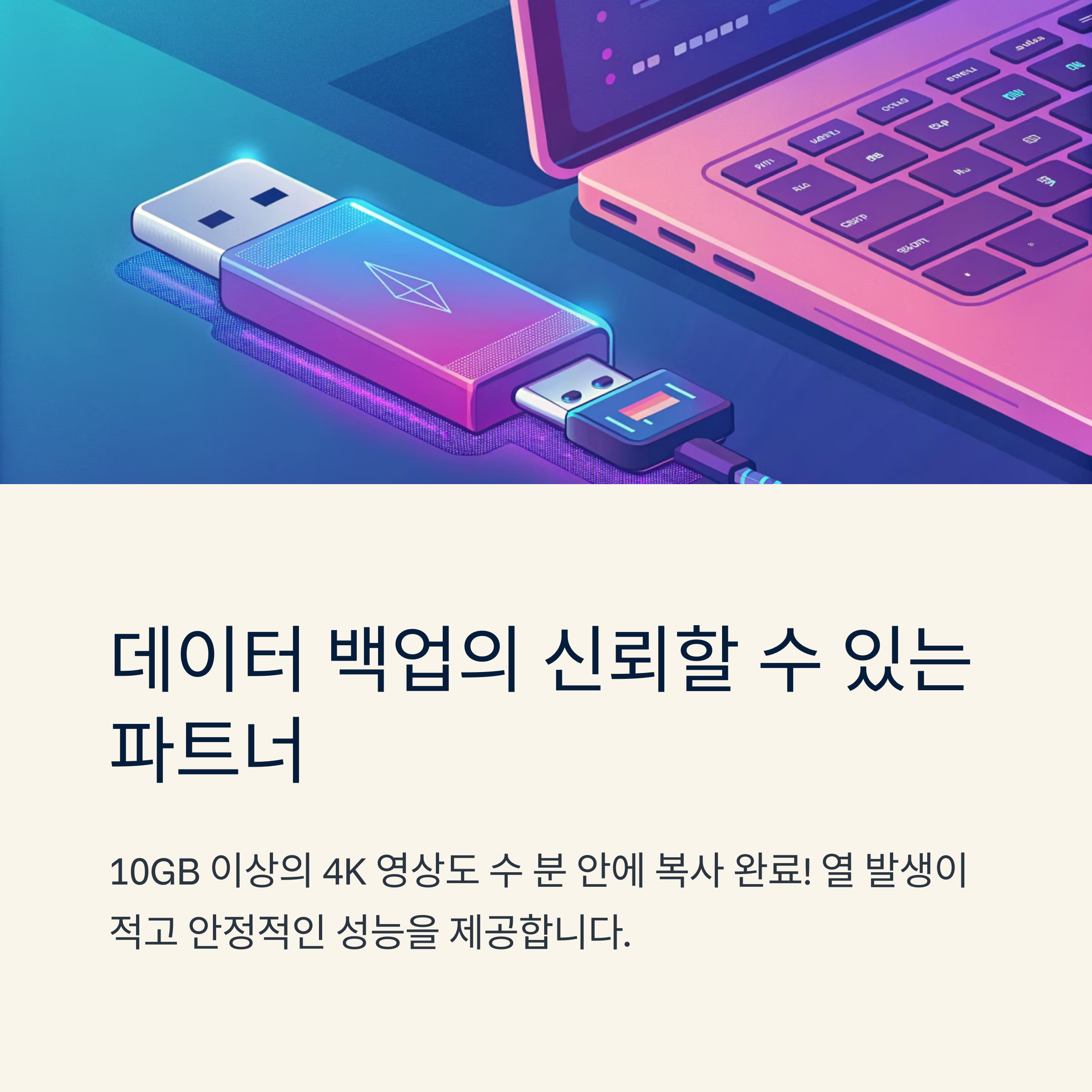 USB를 고를 때 단순 저장뿐 아니라 장기적인 보관 안정성도 중요하게 보시는 분들이 많죠. 이 제품은 꾸준한 쓰기 테스트에서도 열 발생이 적고, 에러 없이 안정적으로 작동해주는 점이 신뢰감을 주었어요. 문서, 사진, 영상 등 다양한 포맷의 파일들을 복사하면서도 속도 저하가 거의 느껴지지 않았답니다.