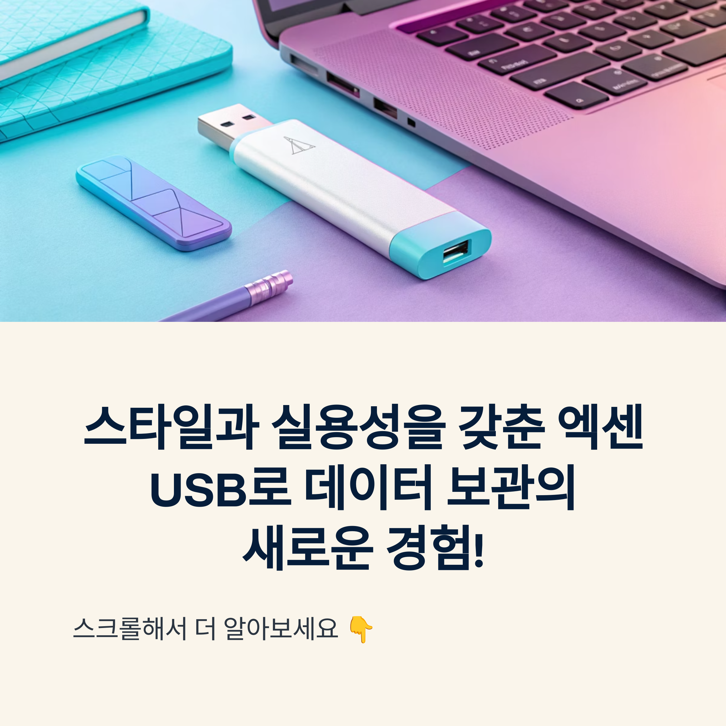 엑센USB는 블랙, 실버, 그레이 같은 무난한 컬러 외에도 파스텔 계열의 포인트 컬러도 있어 개성 있게 선택하실 수 있었답니다. 데스크 셋업이나 업무 공간에 두었을 때도 잘 어울리고, 특히 노트북 옆에 꽂아놨을 때 깔끔한 인상을 주는 게 좋았어요.