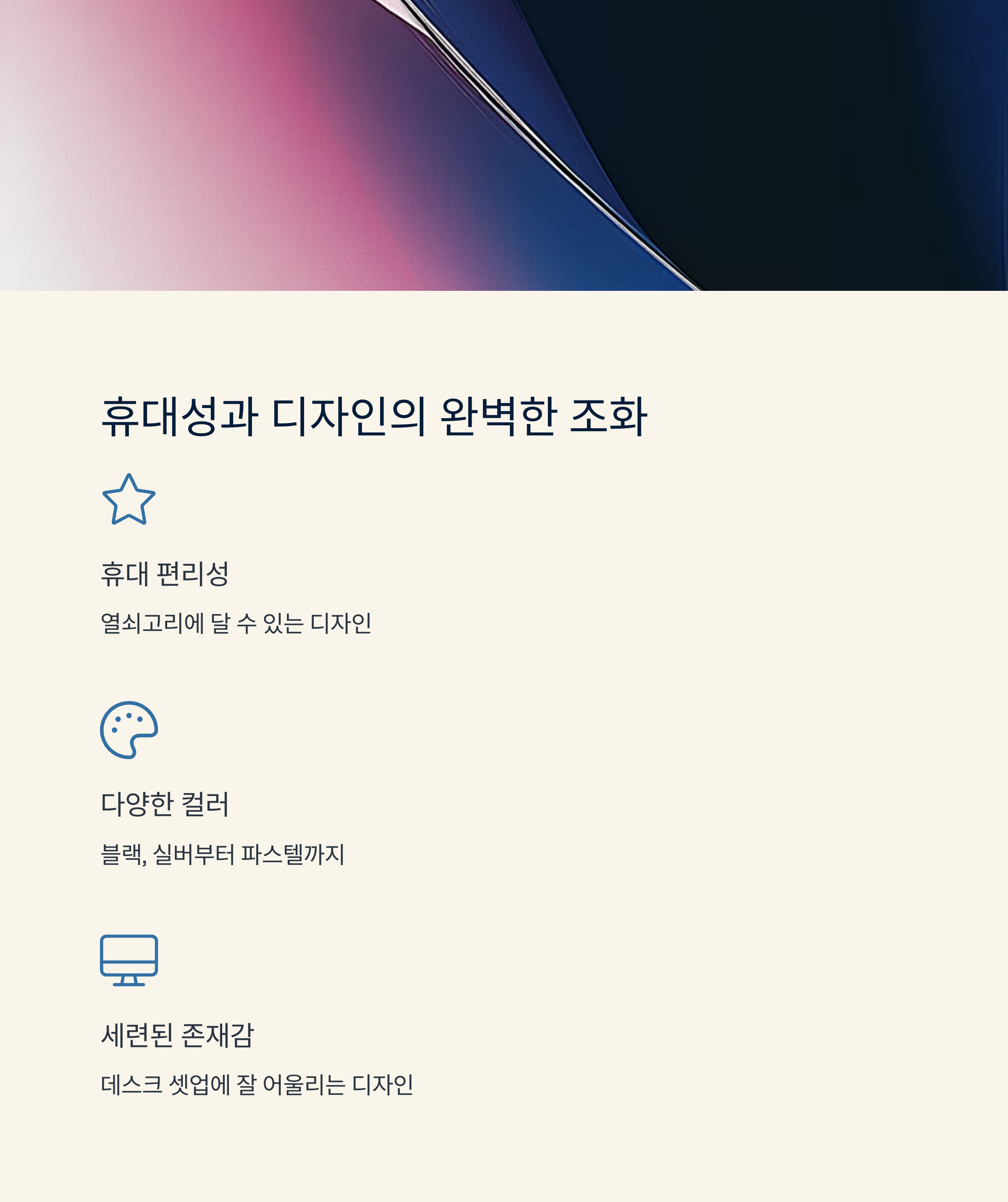 이처럼 외형에서 오는 만족감은 사용자의 기분에도 영향을 주는 만큼, 기능 못지않게 중요한 포인트로 느껴졌어요. 작지만 존재감 있는 느낌이랄까요?