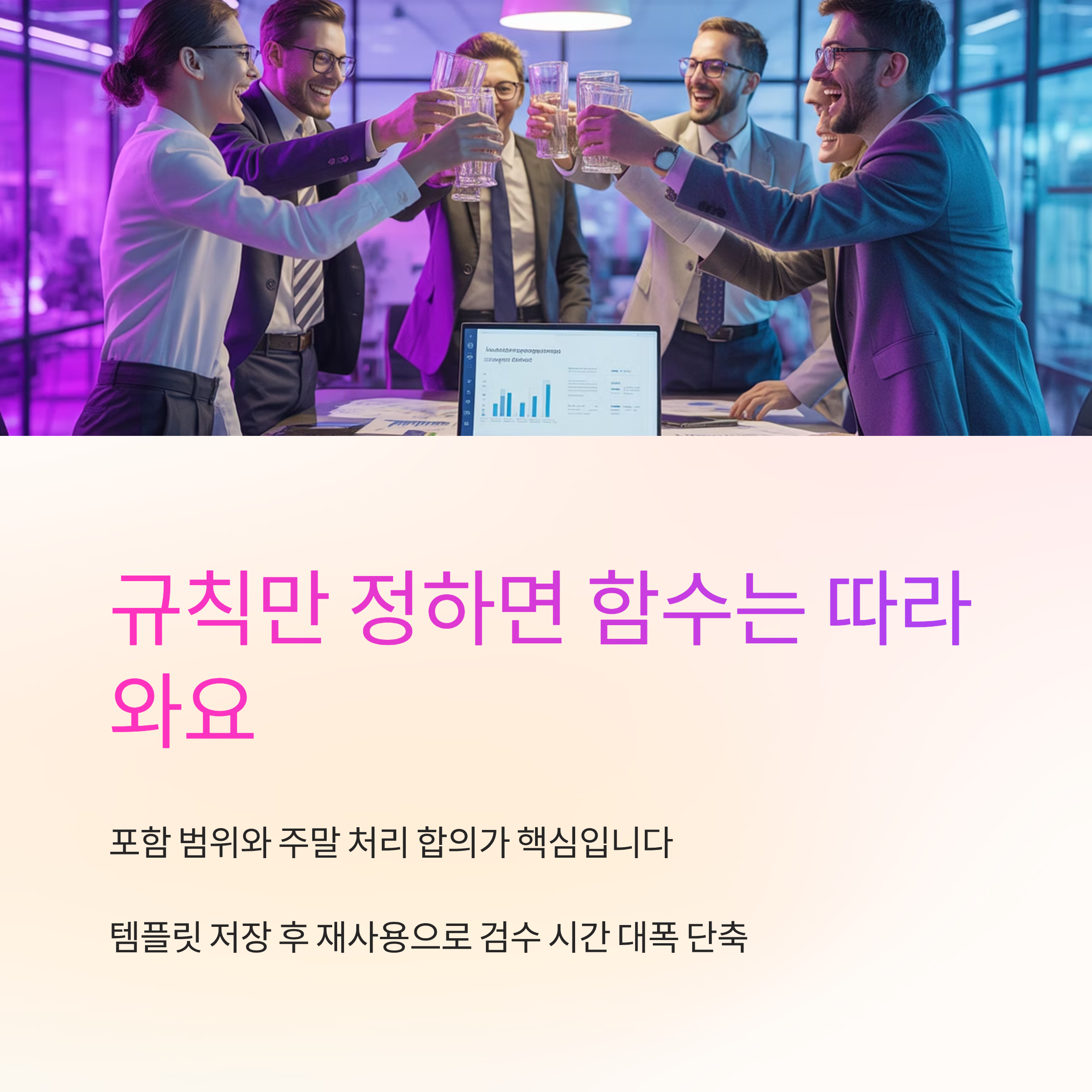 마감일이 주말에 떨어지면 규칙을 먼저 정해야 해요. ‘다음 영업일로 이월’인지 ‘직전 평일로 앞당김’인지에 따라 결과가 달라지거든요. 이 선택은 나중에 보고서 해석에도 큰 영향을 주니 문서에 명시해 두세요.