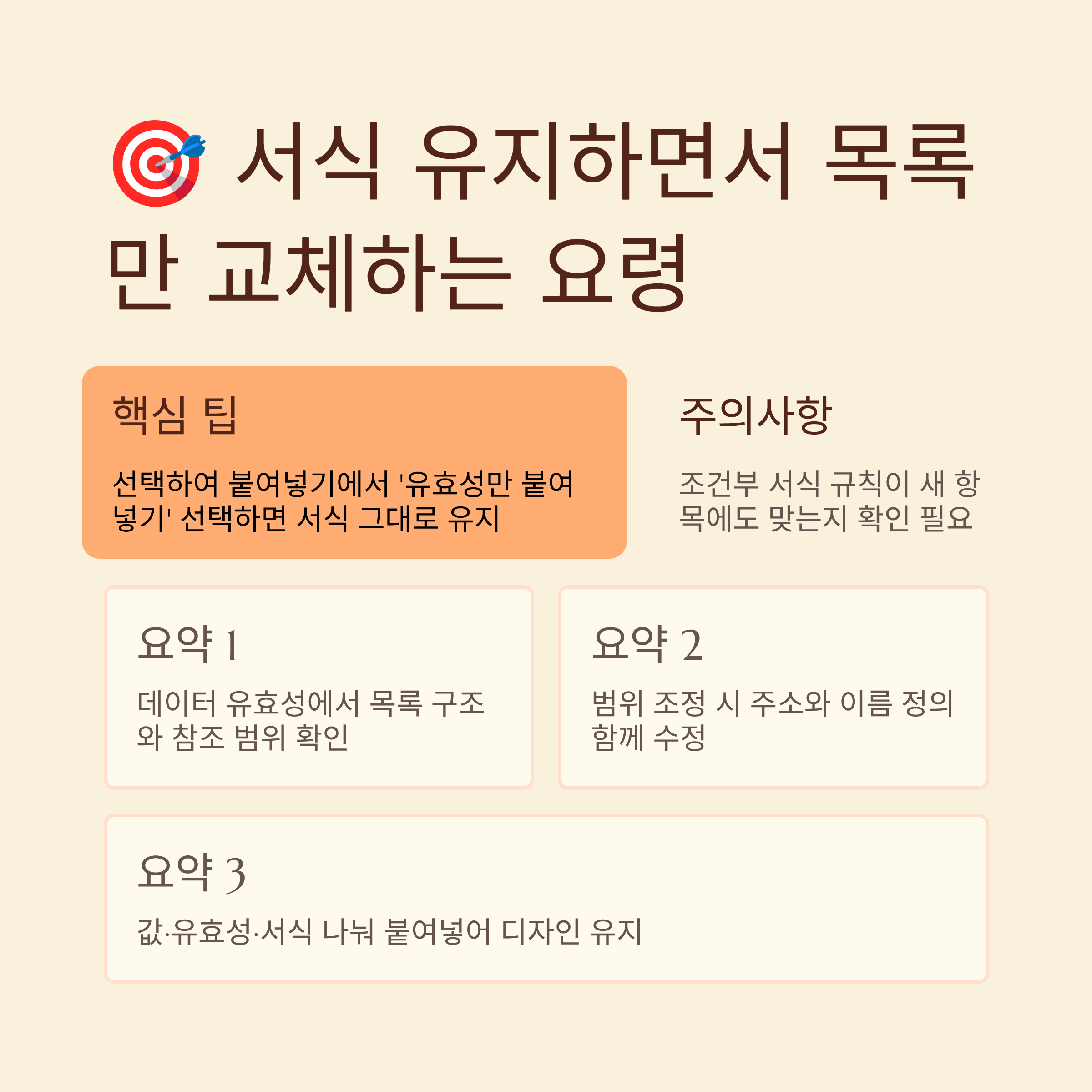 🎯 서식 유지하면서 목록만 교체하는 요령