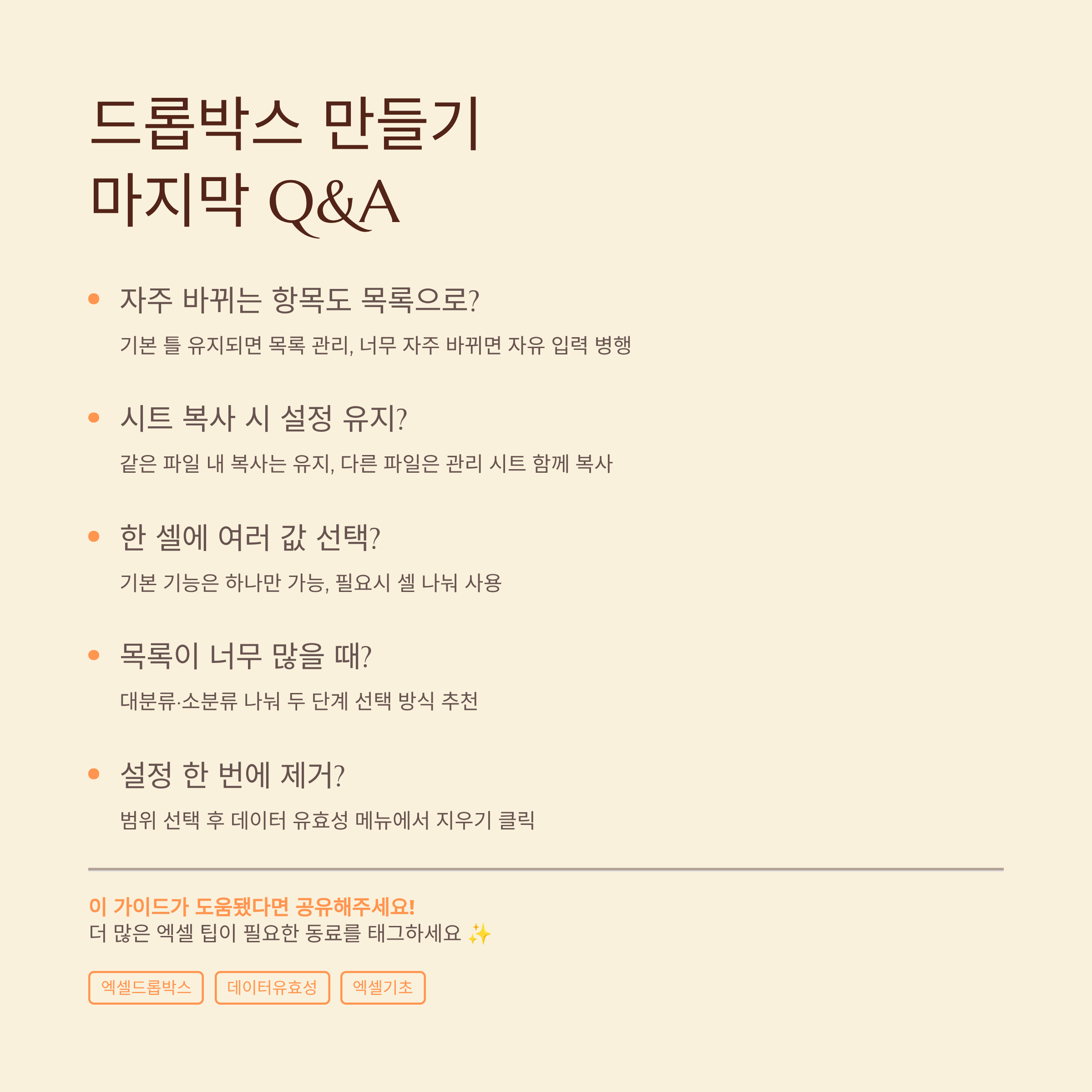 ❓ 엑셀드롭박스만들기 묻고답하기 Q&A