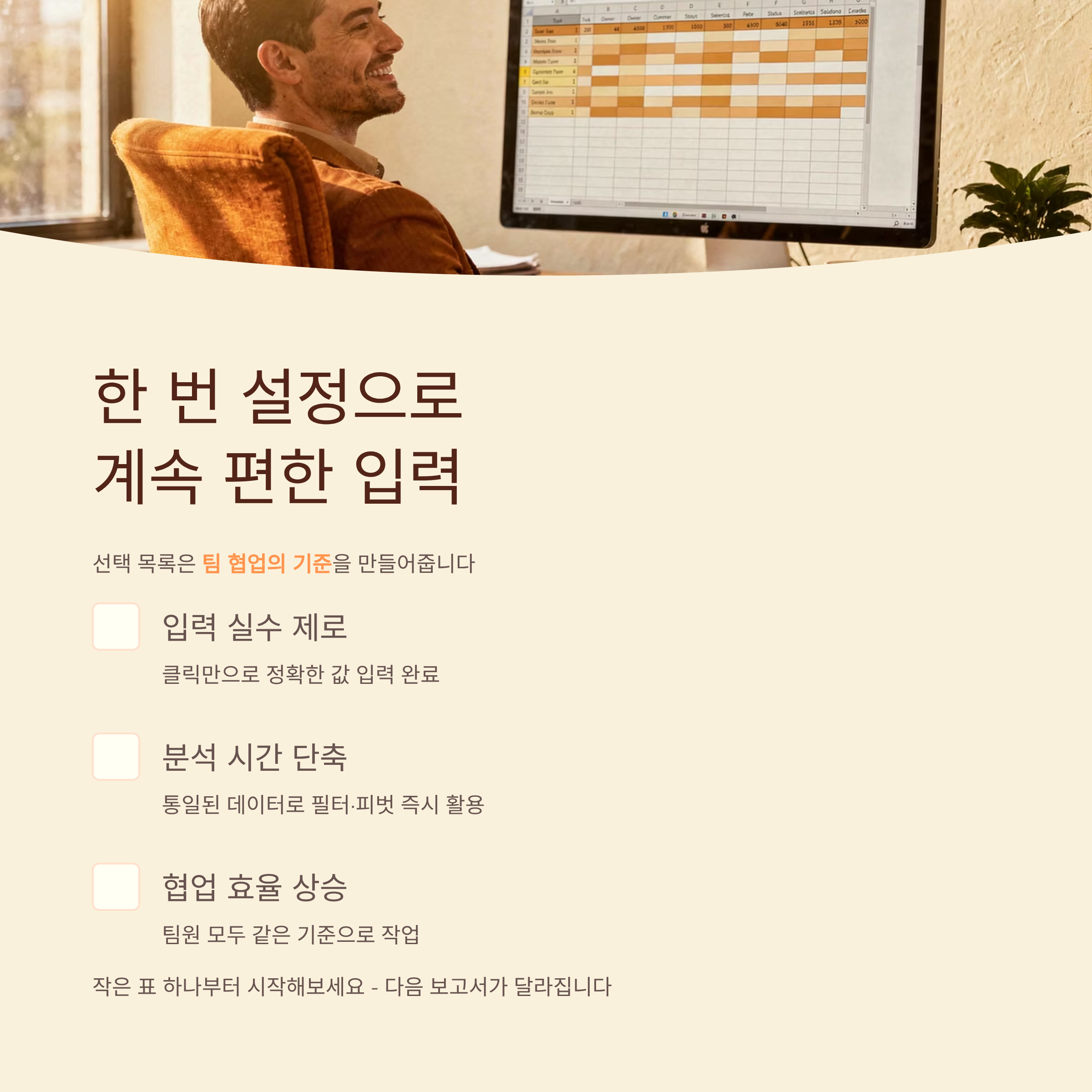 선택 목록 기능은 한 번 만들어 두면 그다음부터는 입력 실수를 거의 신경 쓰지 않아도 돼서, 생각보다 체감 효율이 큰 편이에요. 특히 팀으로 같은 파일을 같이 쓸 때 기준을 맞춰 주는 역할을 해줘서, 나중에 데이터를 분석할 때도 훨씬 편하고요. 오늘 정리한 흐름대로 작은 표 하나에만 먼저 적용해 보시면, 다음 보고서부터는 자연스럽게 목록을 먼저 떠올리게 될 거예요.