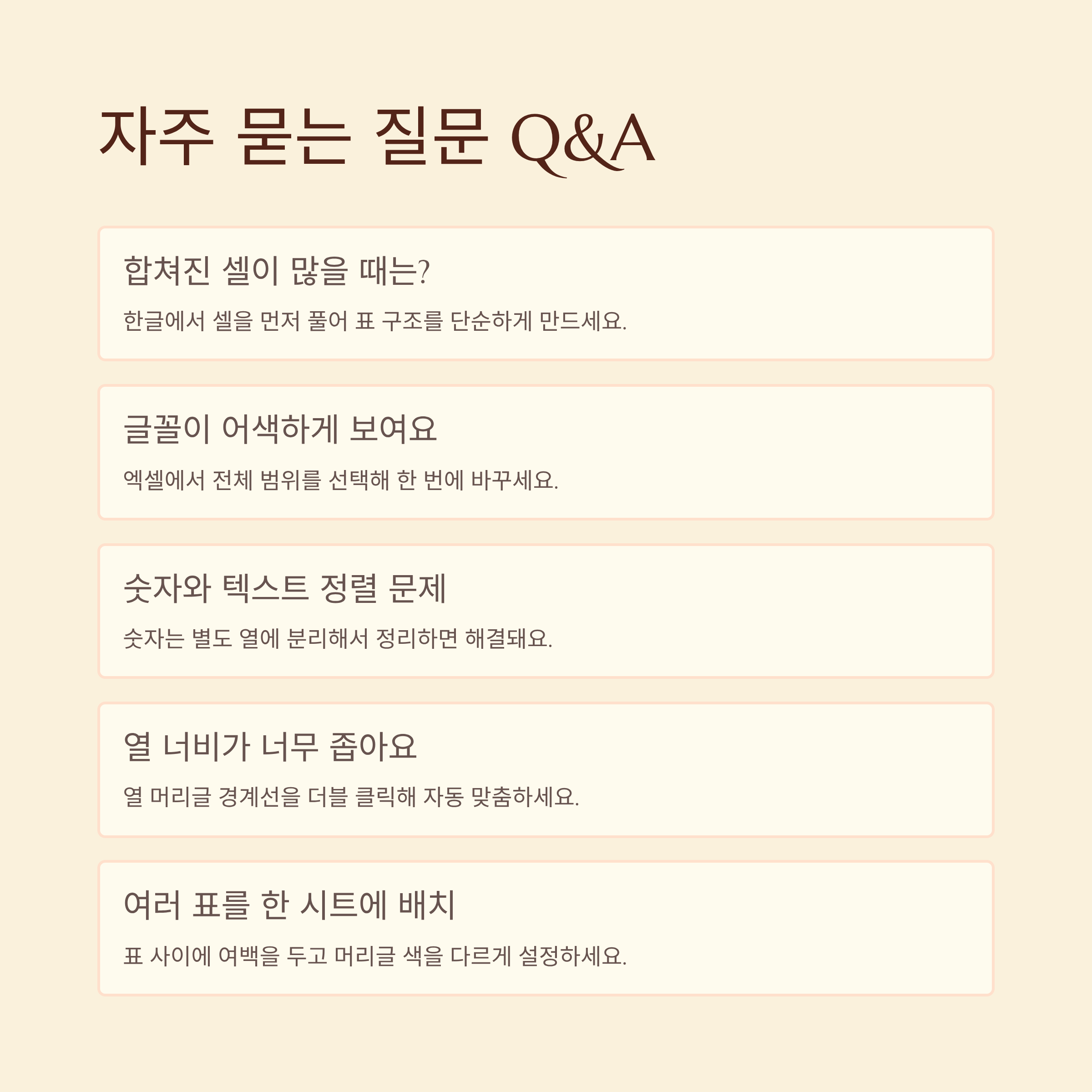 마지막으로, 자주 사용하는 예방법과 해결 순서를 메모처럼 정리해 두면 정말 든든해요. 어떤 상황에서 어떤 메뉴를 열어야 하는지, 수식을 어떻게 나누면 좋았는지 한 장으로 만들어 두면 다음에 훨씬 덜 헤매게 되거든요. 이런 정리 카드는 저장해두면 편하실 거예요.