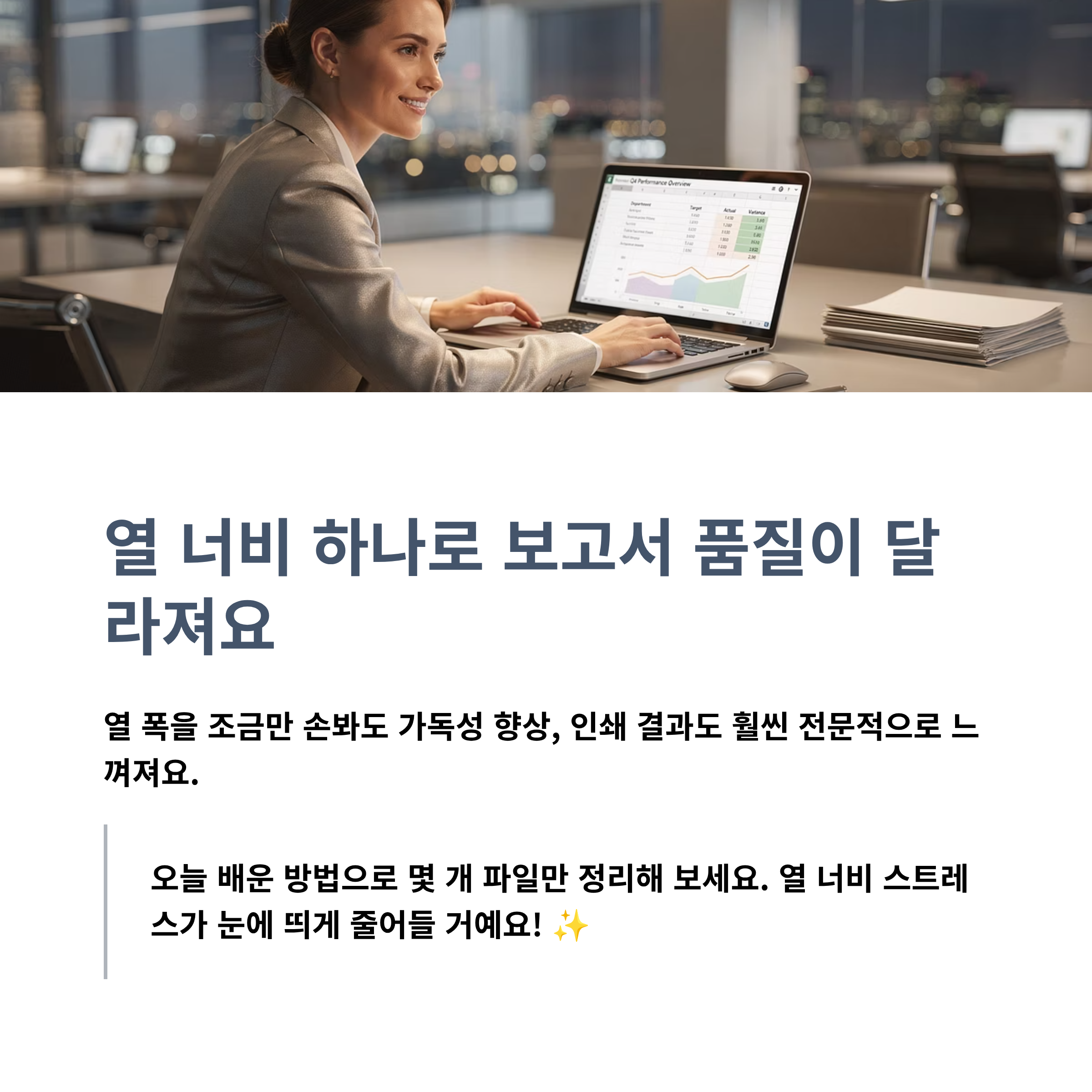 오늘 소개한 방법으로 몇 개 파일만 직접 정리해 보시면, 앞으로는 열 너비 때문에 스트레스 받는 일이 눈에 띄게 줄어들 거예요.