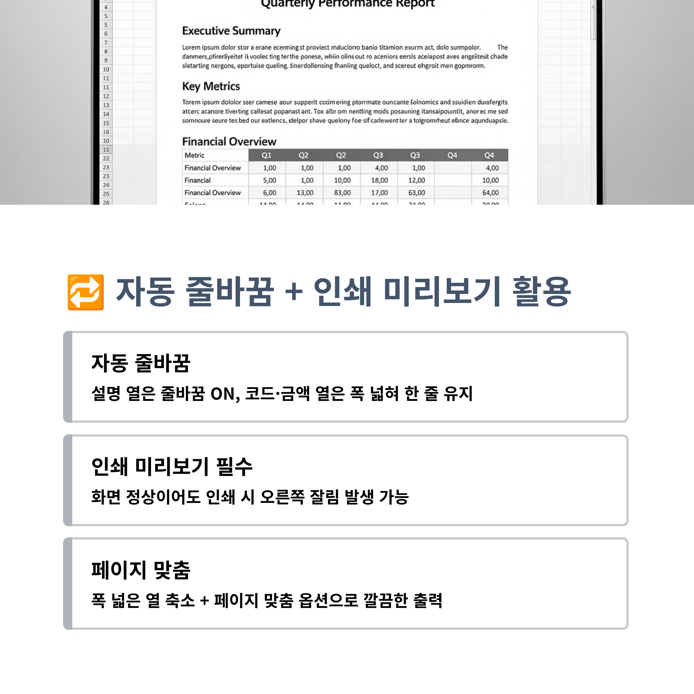 🔁 자동 맞춤·자동 줄바꿈과 인쇄 미리보기까지 함께 활용해요