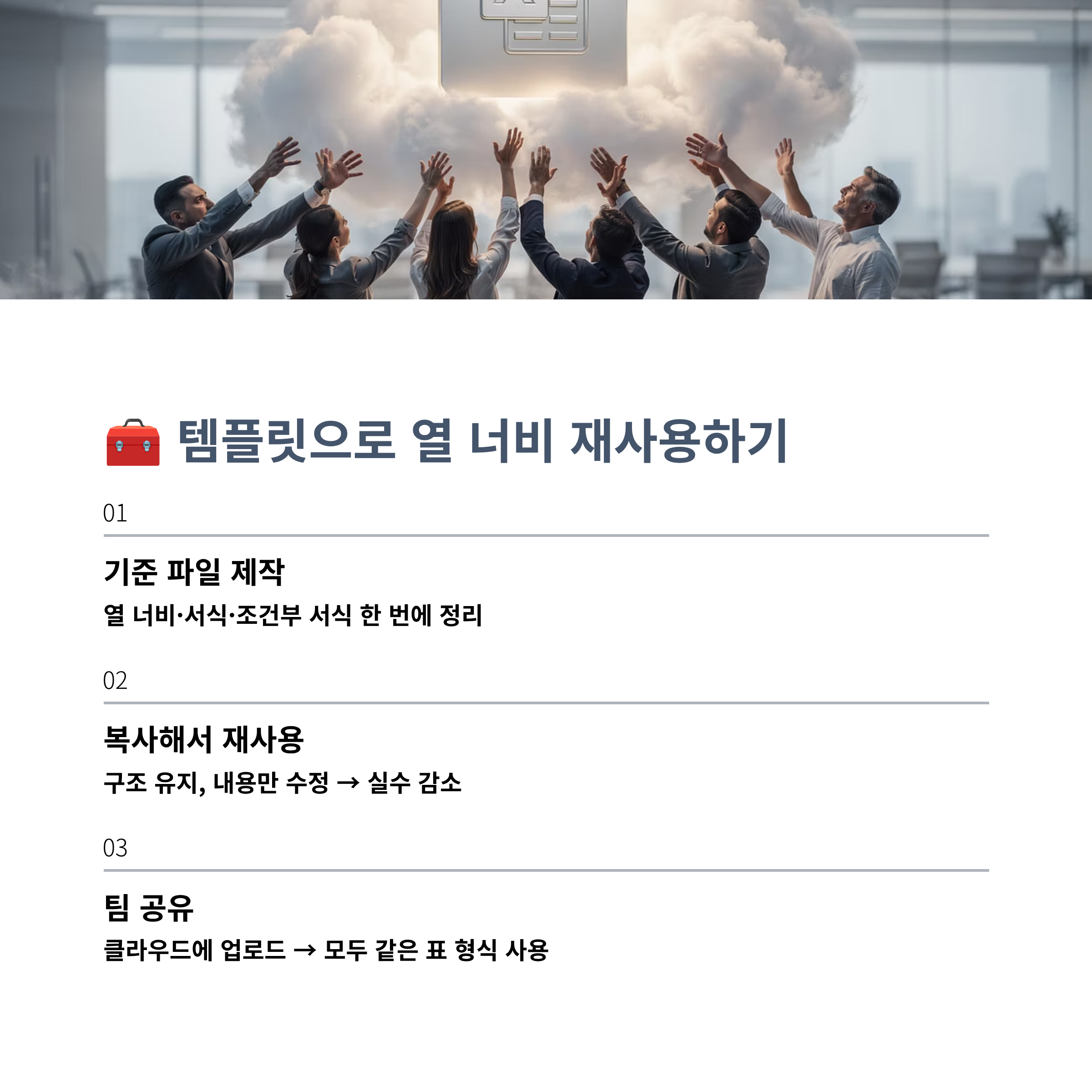 클라우드 저장소에 기본 양식을 올려 두고 팀과 공유하면, 모두가 같은 표 형식을 사용하게 되어 문서 정리가 훨씬 수월해져요.