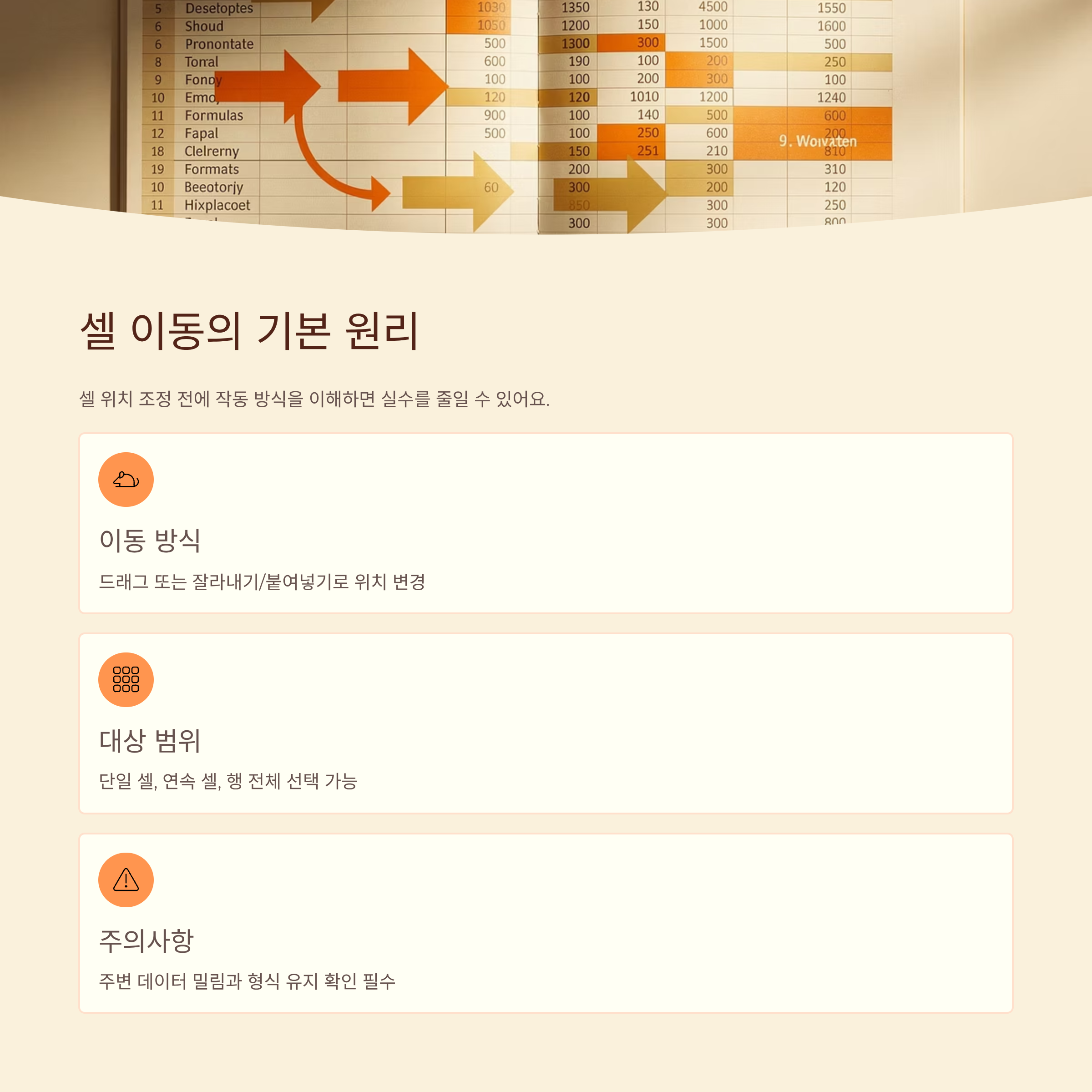 행 전체를 움직일지, 특정 셀 범위만 옮길지 결정한 뒤에 단축키와 메뉴를 선택하면 훨씬 수월해요. 작업 전에 현재 범위를 복사해 다른 시트에 붙여 두면 혹시 잘못 옮겼을 때 금방 되돌릴 수 있어요. 이런 기본 흐름만 알고 있어도 셀 위치를 조정하는 시간이 눈에 띄게 줄어들어요.