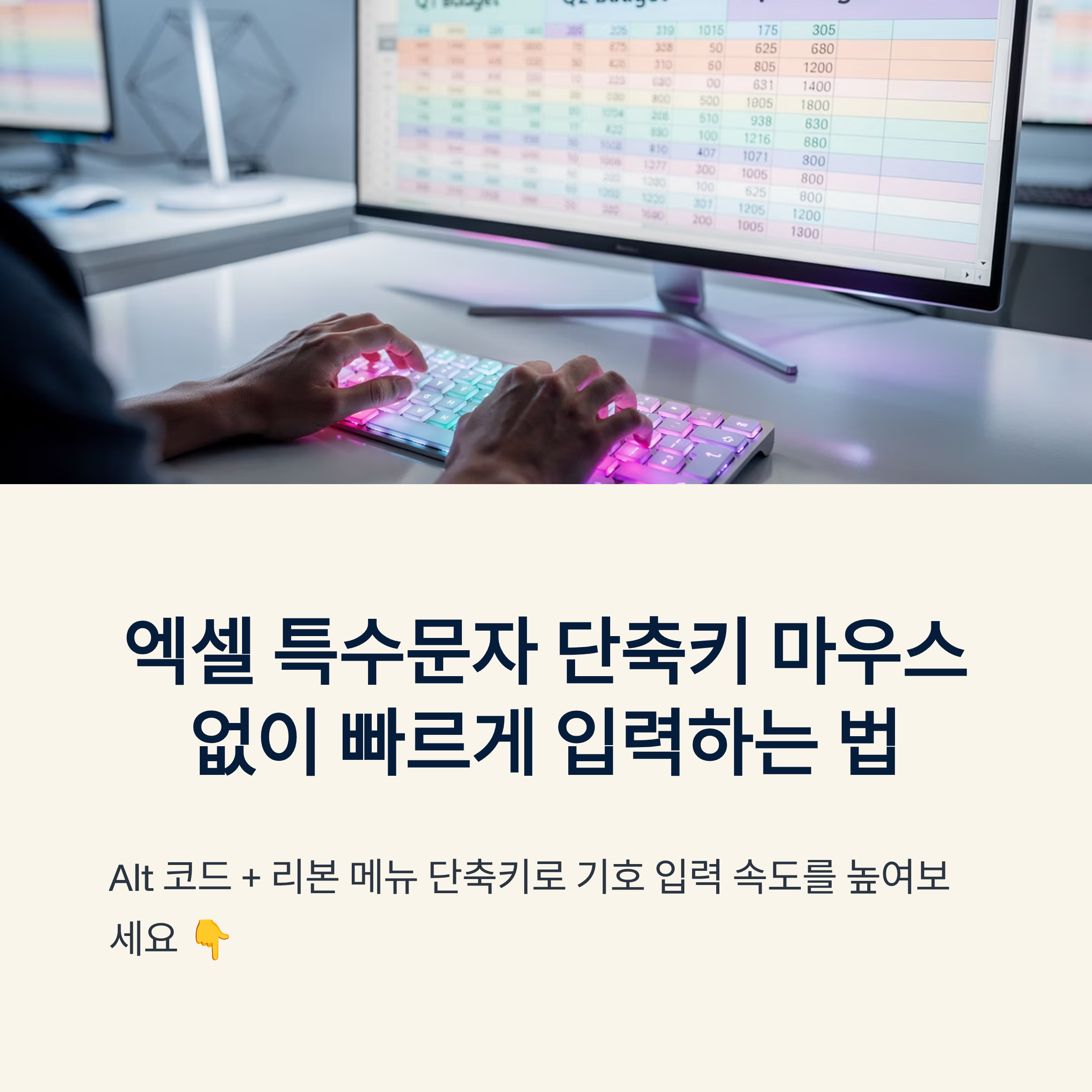 숫자 키패드로 입력하는 Alt 코드와, 리본 메뉴를 키보드로 여는 방식만 알아두면 마우스를 거의 쓰지 않고도 다양한 특수문자를 빠르게 넣을 수 있어요.