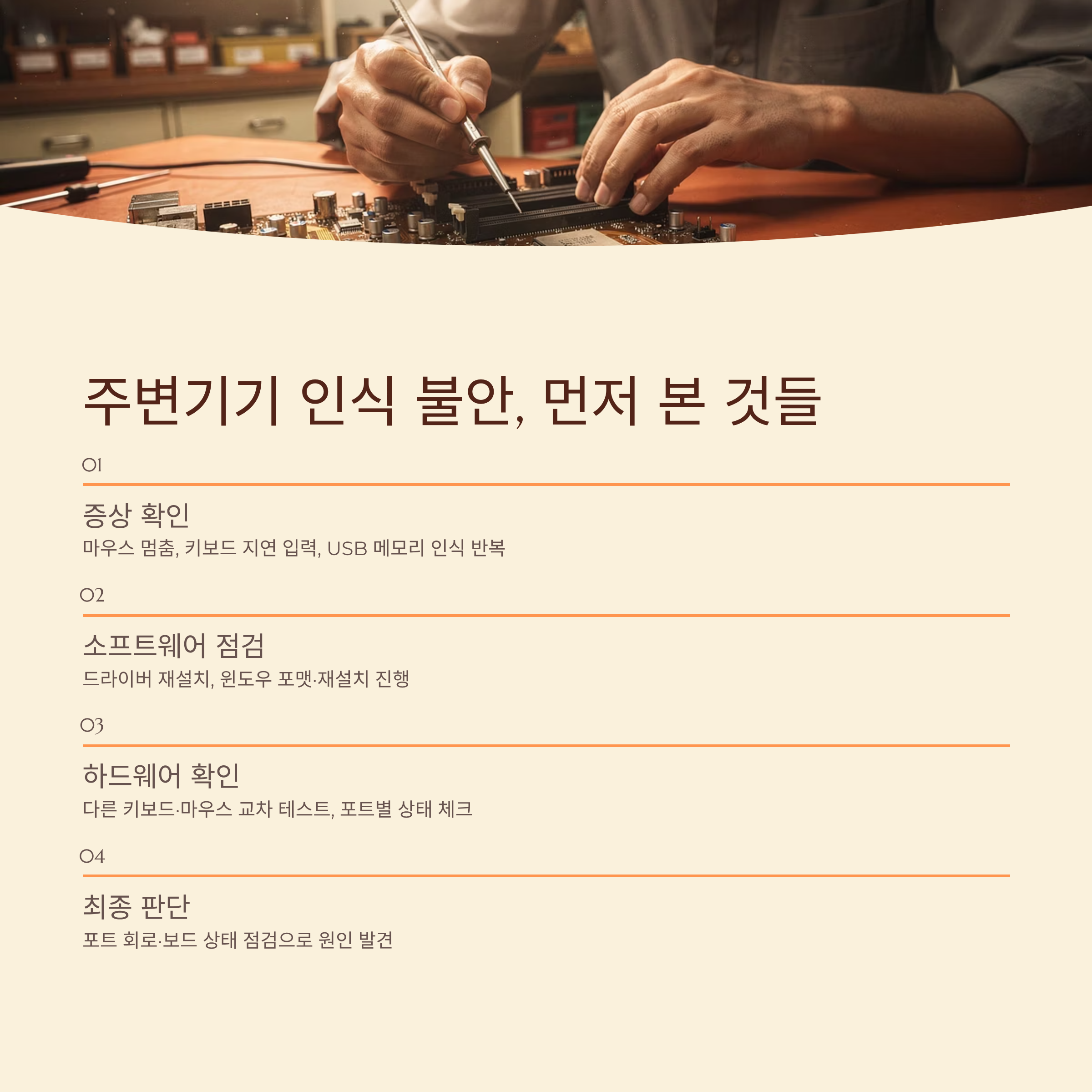 | 증상 확인 | 키보드·마우스·USB 메모리 인식 패턴 점검 |