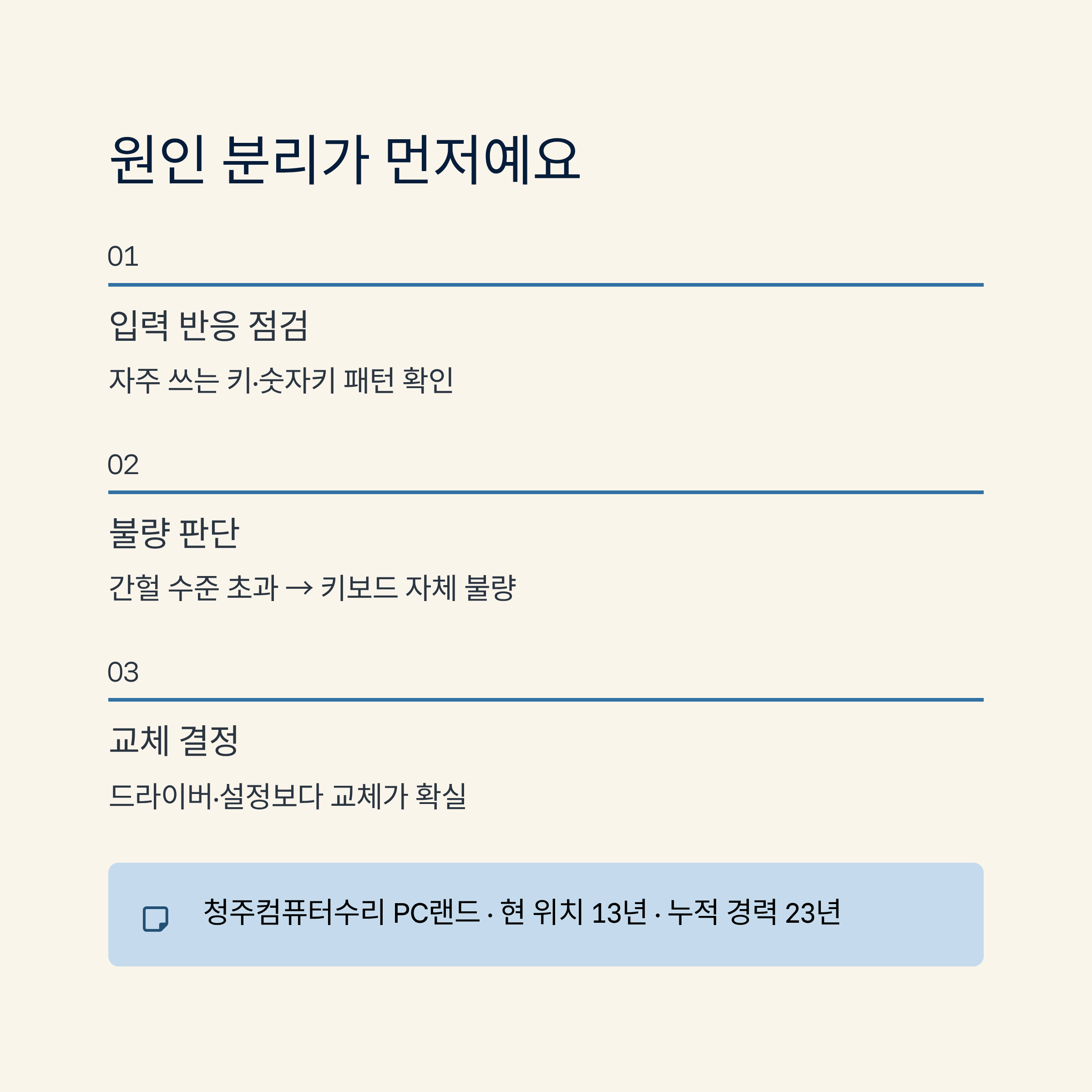 | 주요 증상 | 일부 키 미입력, 숫자 입력 불안정으로 문서 오타 반복 |