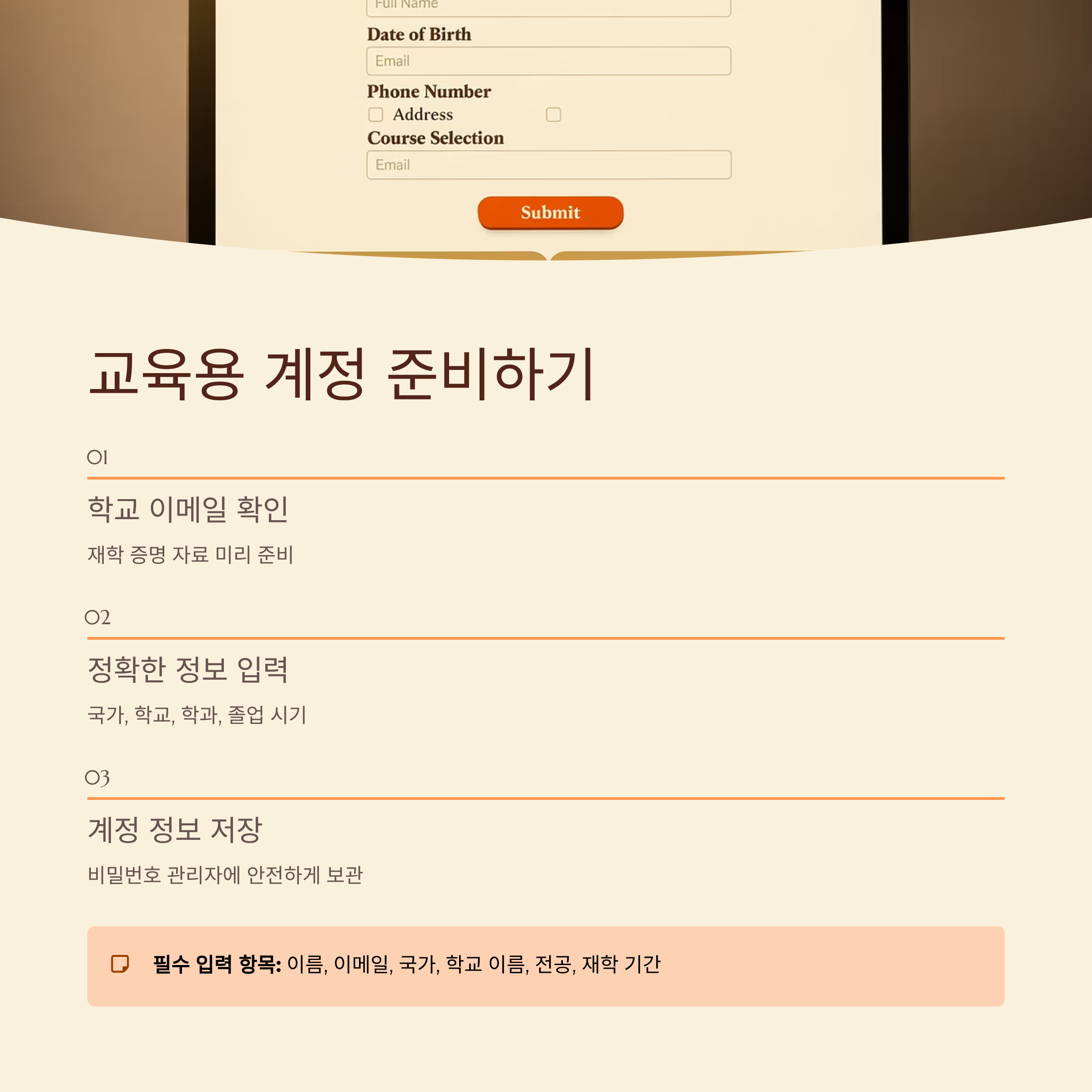 가장 먼저 필요한 건 본인 이름으로 된 교육용 계정이에요. 학교 이메일이 있다면 인증 과정이 훨씬 수월하고, 없다면 재학 증명 자료를 따로 제출해야 하는 경우도 있어서 미리 준비해두면 좋아요. 계정을 만들 때는 추후 졸업 이후에도 로그인 기록을 확인할 수 있도록 개인 메일과 연락처도 같이 정리해두는 게 도움이 돼요.