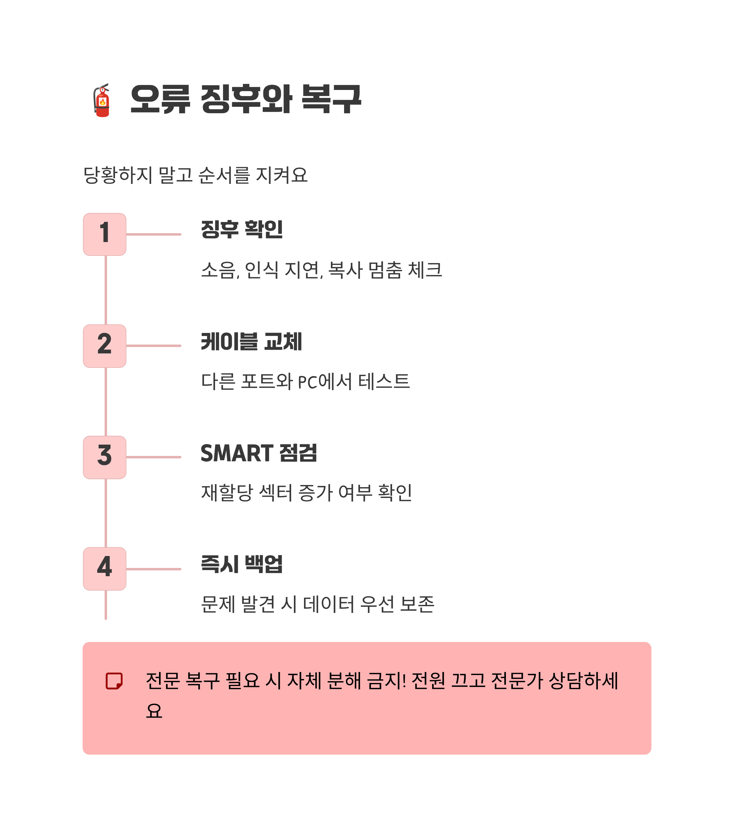 🧯 오류 징후와 복구, 당황하지 말고 순서를 지켜요