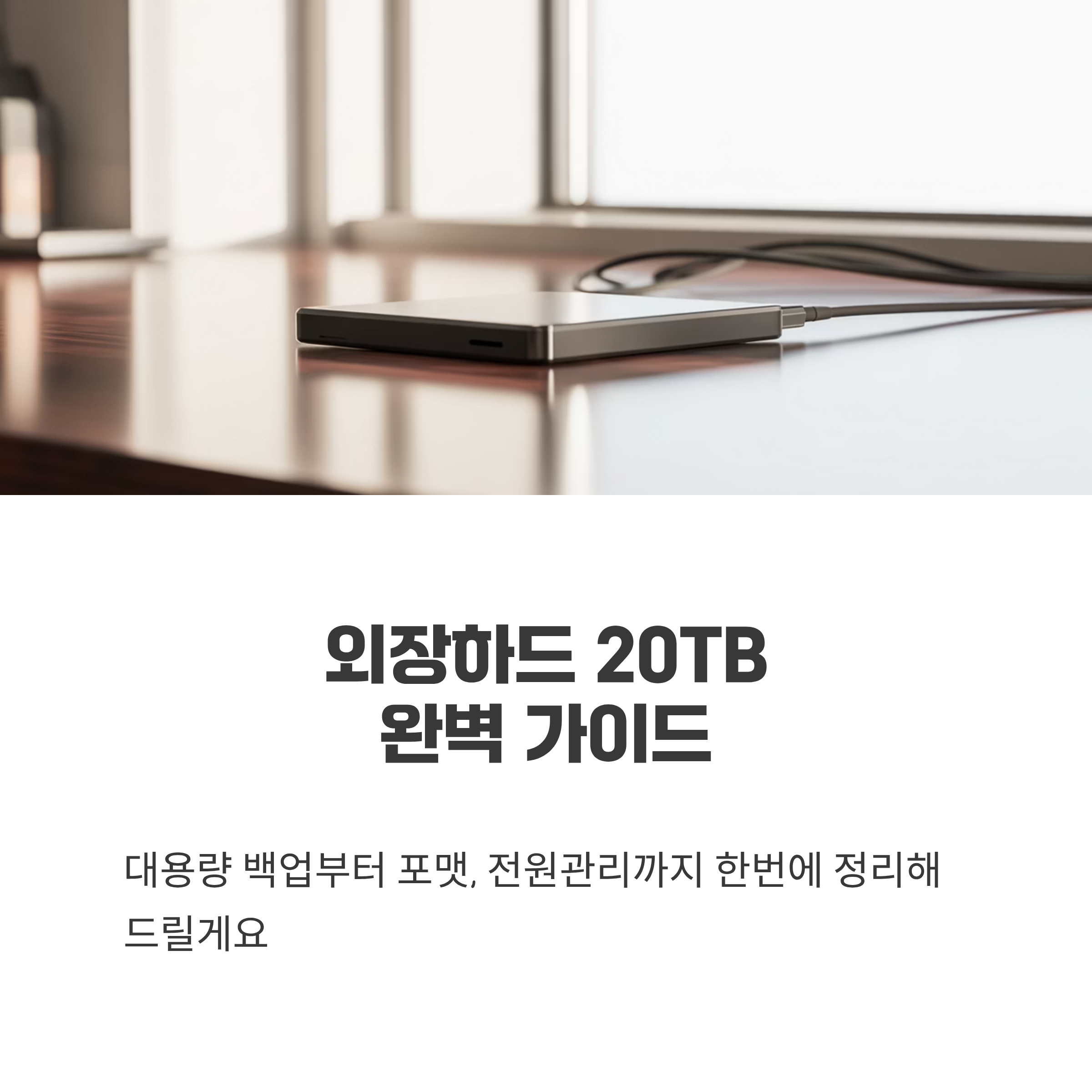 휴대가 많다면 짧은 케이블과 완충 파우치를 기본으로 챙겨요. 충격보다 비틀림이 더 위험해요. 가방에서 눌림이 없도록 세로로 세워 넣고, 장시간 이동 후에는 SMART 상태를 한 번 확인해요. 이렇게 하면 외장하드20TB 같은 대용량 드라이브도 오래 안정적으로 쓸 수 있어요.