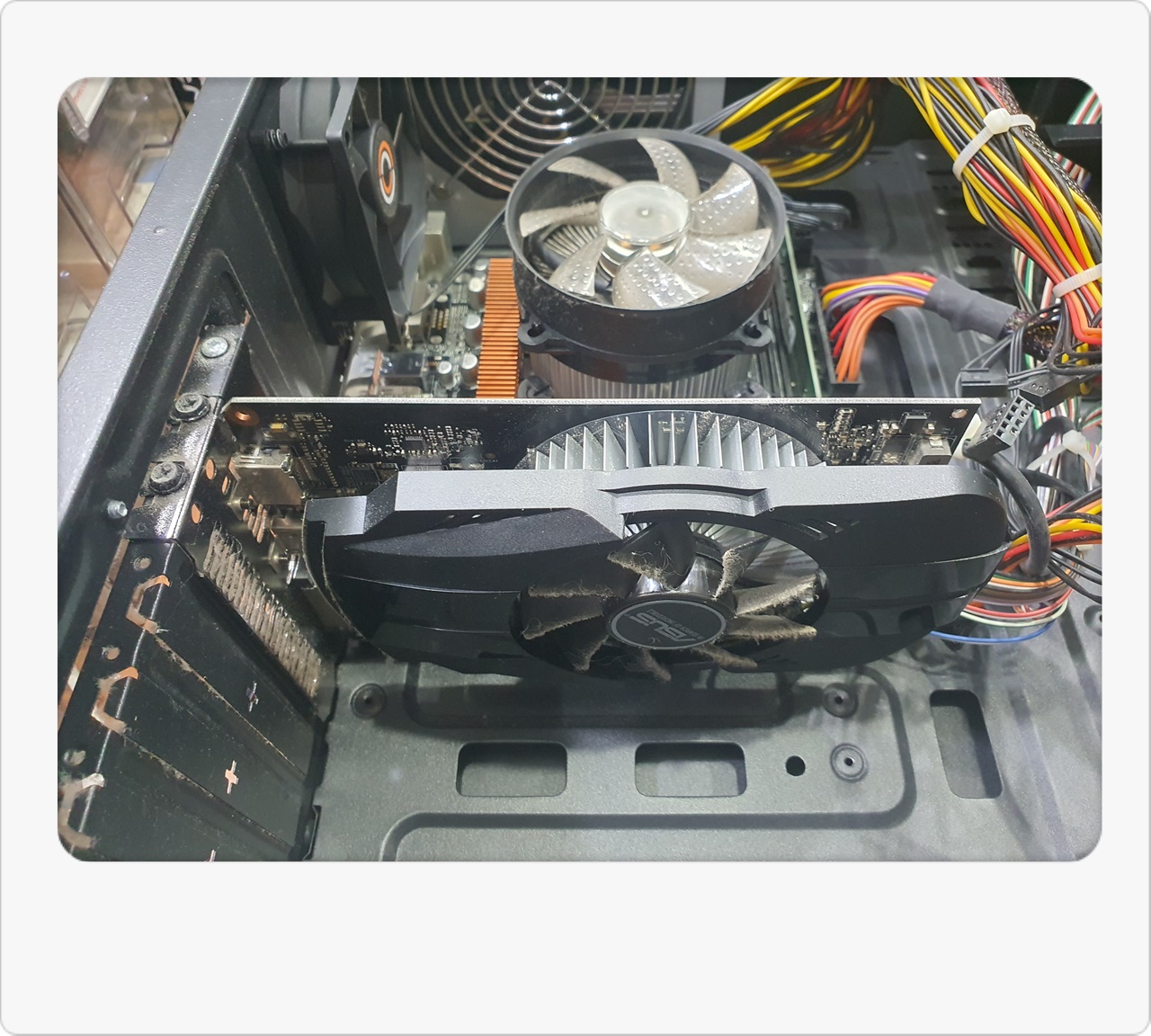 H110M 메인보드로 갈아끼우는 과정은 사실 어렵지 않습니다. 기존 메인보드를 분리하고, CPU와 쿨러를 조심스럽게 탈착한 뒤, 교체할 메인보드 위에 CPU를 다시 장착하면 되거든요. 이때 쿨러 팬 방향이나 서멀구리스 도포 상태를 세심히 확인하는 게 중요합니다. 한번 조립이 끝난 후에는 케이블이 제대로 꽂혀 있는지, 팬이 정상 동작하는지 꼼꼼히 확인했어요. 이렇게 새 메인보드를 연결한 뒤 전원을 켜보니, 기다렸다는 듯이 화면이 짠! 하고 잘 나오는 겁니다. 손님께서도 “오오! 드디어 화면이 보이네요!”라며 기뻐하시더라고요.