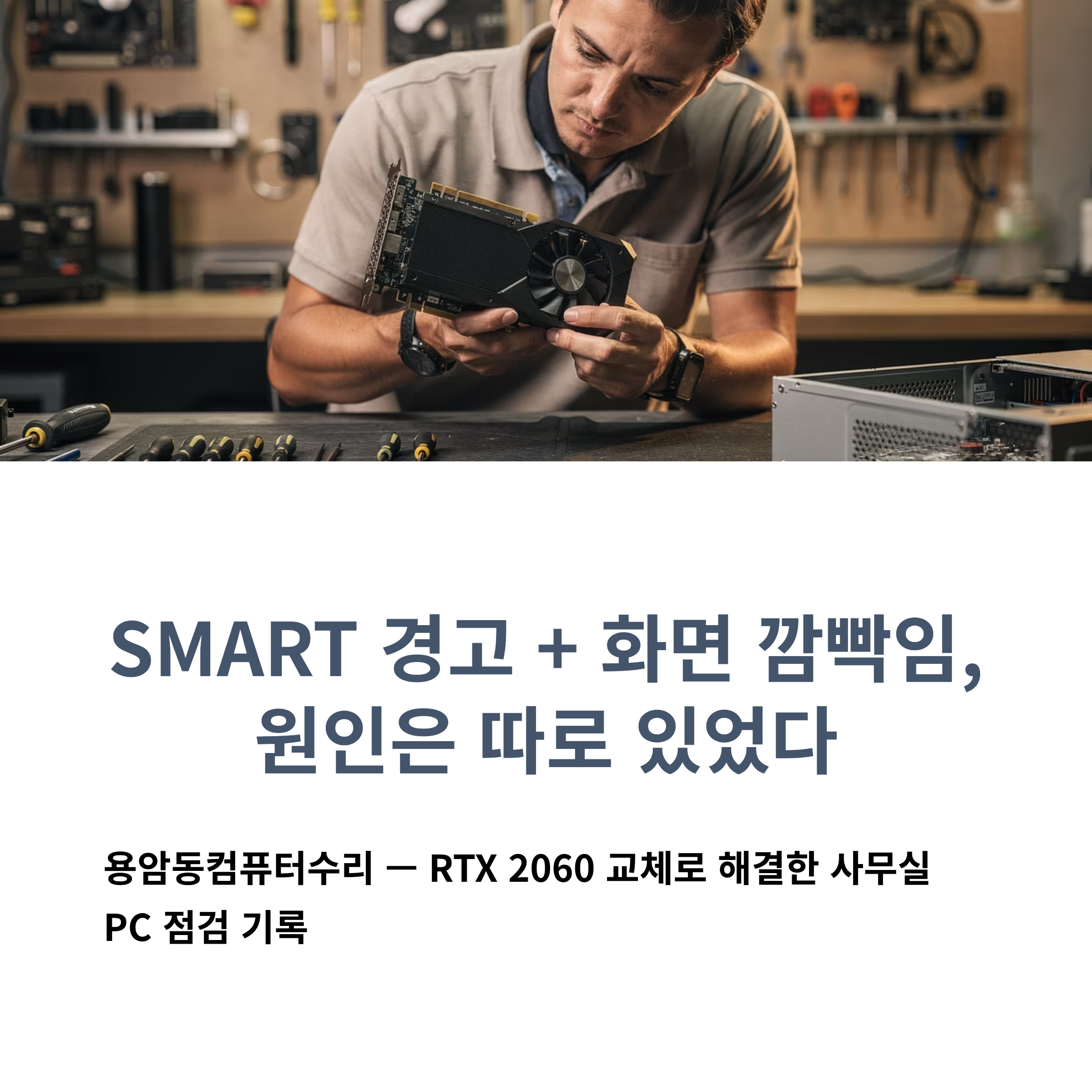 오늘은 부팅 시 SMART 경고와 함께 보였던 화면 깜빡임을 VGA 출력·그래픽카드 중심으로 점검하고 교체까지 진행한 흐름을 정리해볼게요.