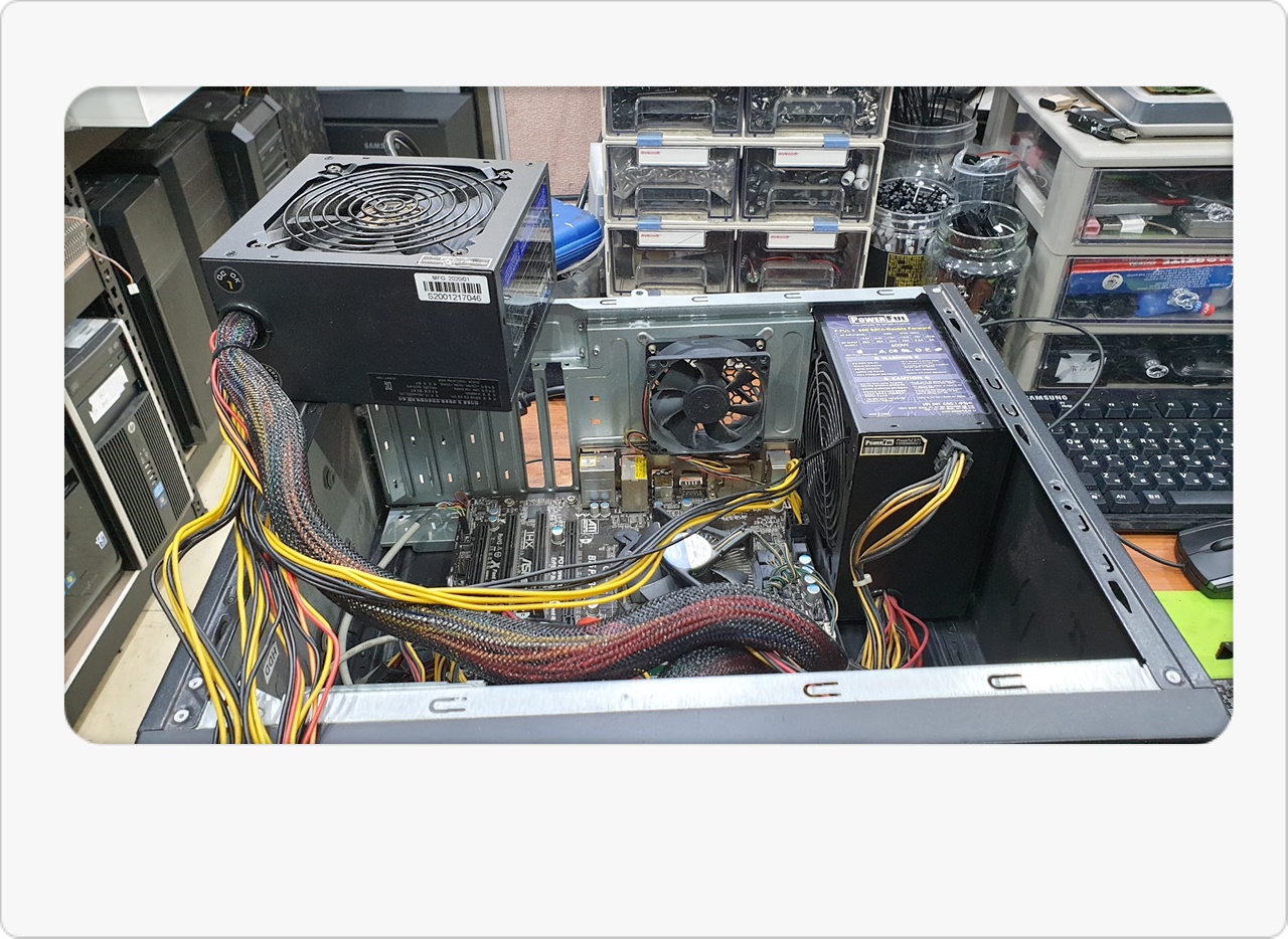안녕하세요. 저희 PC랜드컴퓨터는 분평주공아파트 510동 맞은편에서 13년째 자리를 지키며, 컴퓨터 업계와 함께 성장해 왔습니다. 오래전부터 이 일을 해오다 보니 다양한 사연과 문제를 접하게 되었는데, 그중에는 예전 게임방 특유의 케이스를 그대로 사용하다가 곤란을 겪은 분도 계셨죠. 모니터에 ‘신호 없음’ 문구가 계속 떠서 당황스러워하셨는데, 자세히 진단해보니 파워서플라이(PSU)가 노후화된 상태였습니다. 이렇게 파워 한 군데만 문제가 생겨도 전체 컴퓨터가 작동하지 않는 경우가 흔히 발생합니다. 저희는 단순 교체로 끝내지 않고, 본체 내부를 꼼꼼히 살펴 다른 잠재적 문제는 없는지까지 모두 확인해 드리곤 합니다.