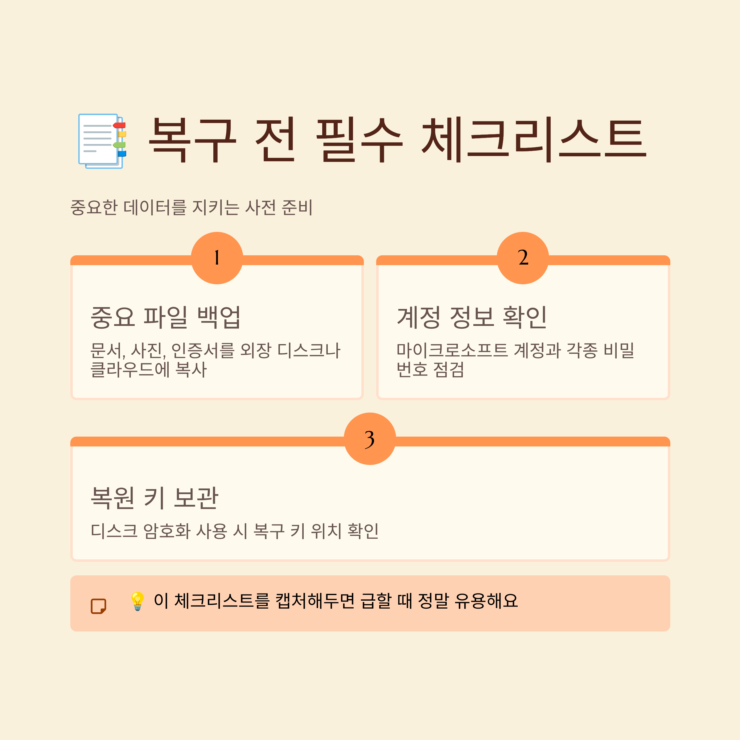 📑 복구 전 체크리스트를 만들어 두면 마음이 한결 편해요