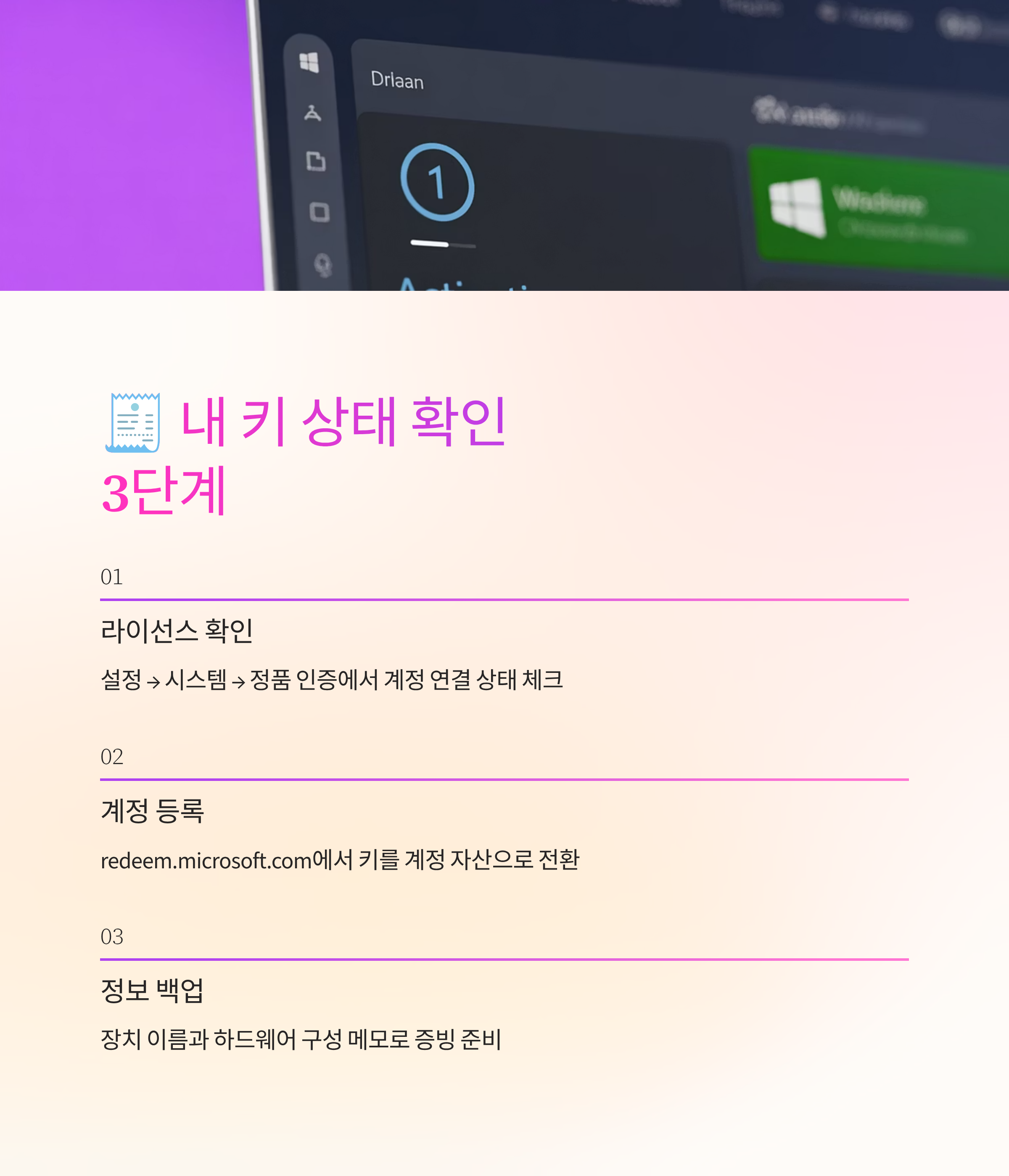 라이선스는 막연히 어렵게 느껴지지만, 원칙만 알면 의외로 단순하더라고요. 사람에게 귀속되는 권리인지, 장치에 묶이는 권리인지 구분하고 계정 연동만 챙겨두면 큰 문제 없이 굴러가요. 다음에 본체를 바꾸더라도 오늘 정리한 흐름대로만 따라가 보세요. 인증이 막히던 순간들이 훨씬 덜 불안하게 느껴질 거예요. 작은 준비가 긴 시간을 아껴줘요.