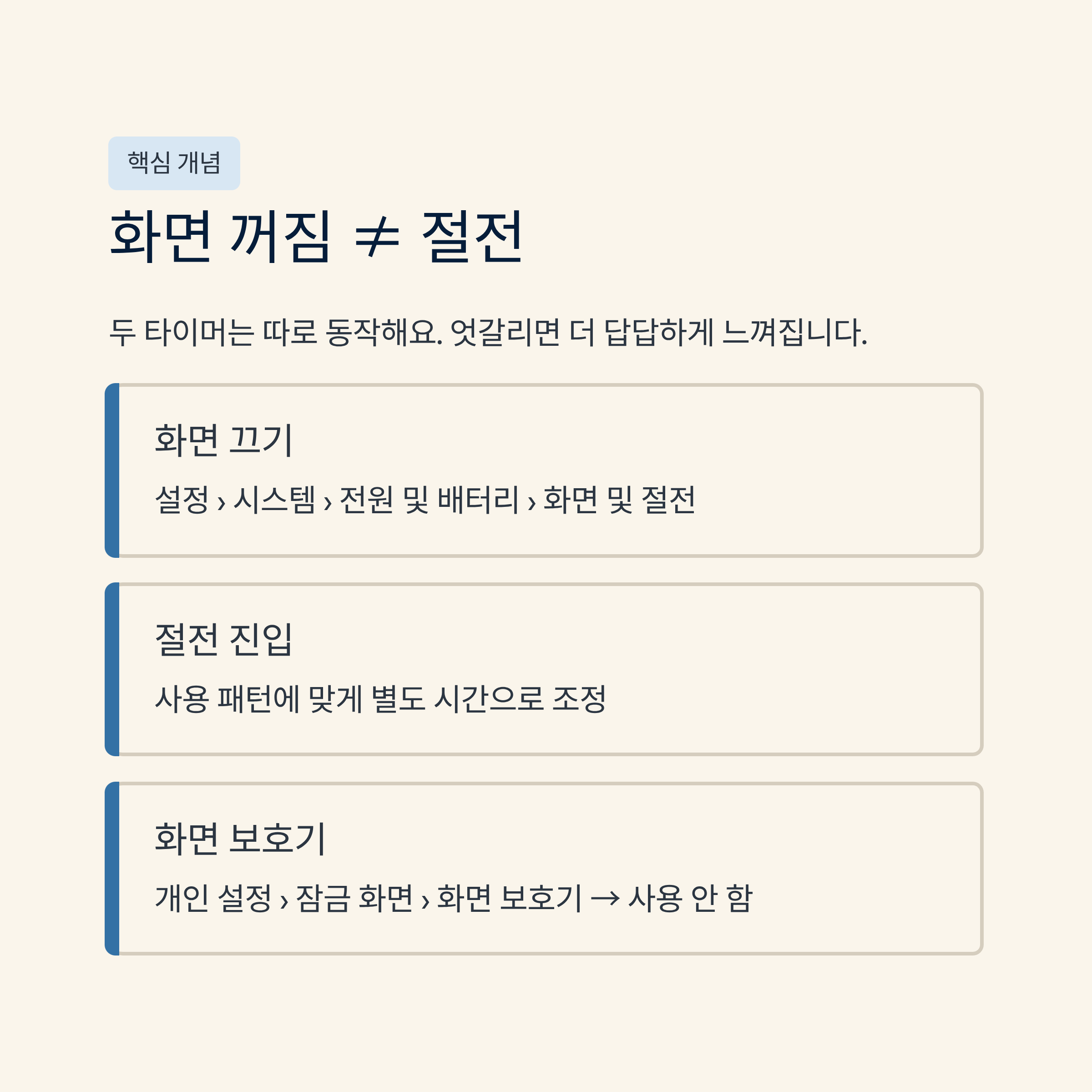 🧭 화면 꺼짐 시간과 절전 진입 시간을 먼저 분리해서 맞춰요