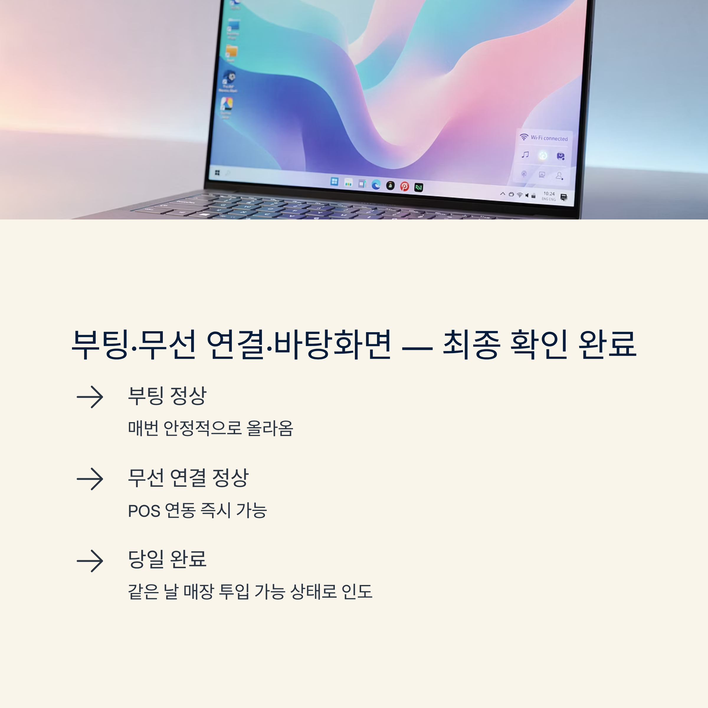 ✅ 부팅·무선 연결·바탕화면 진입까지 매장 최종 확인