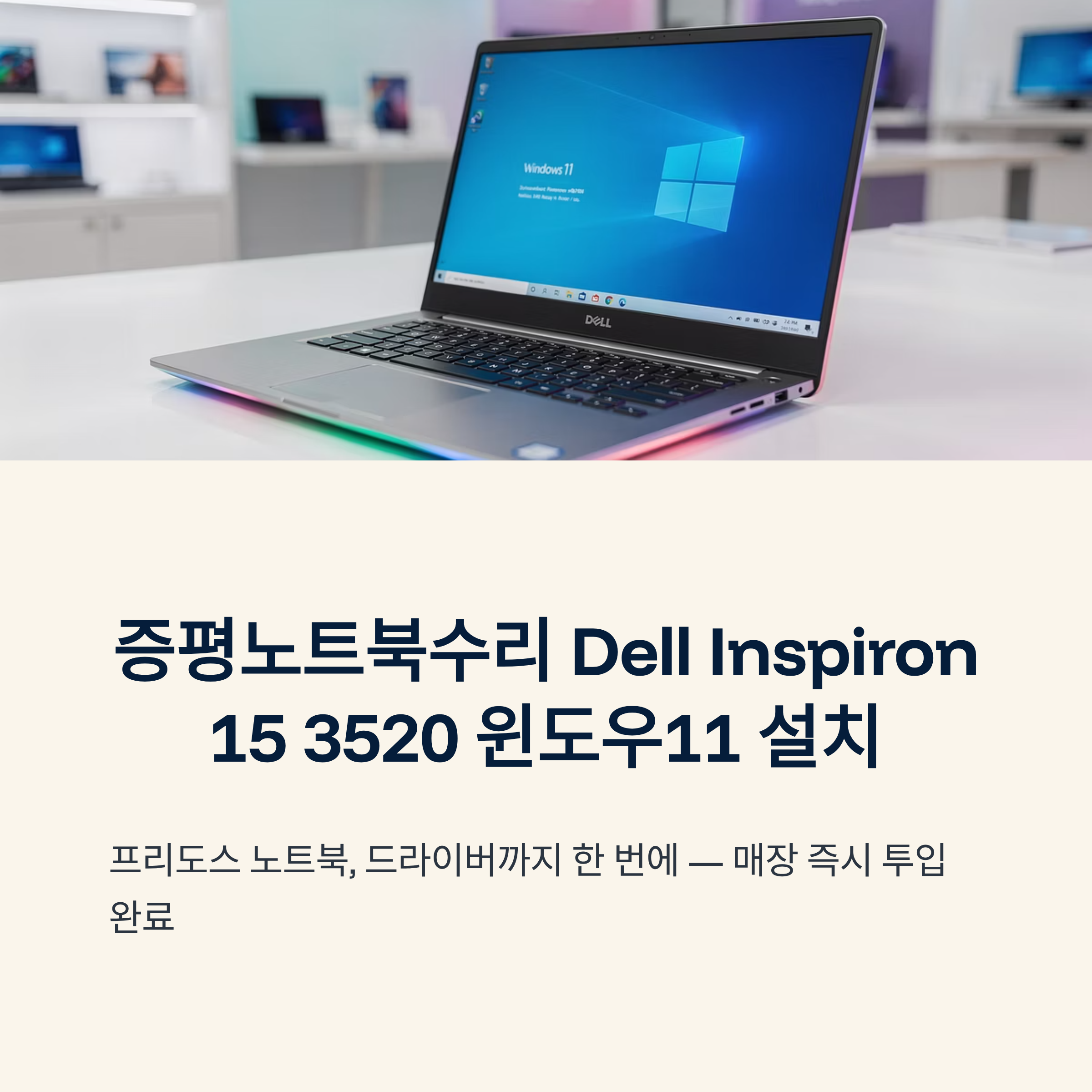 이번 Inspiron 15 3520도 저장장치 인식과 설치 환경이 정상이어서, 윈도우11과 필수 드라이버 적용으로 바로 업무 투입이 가능해졌어요.