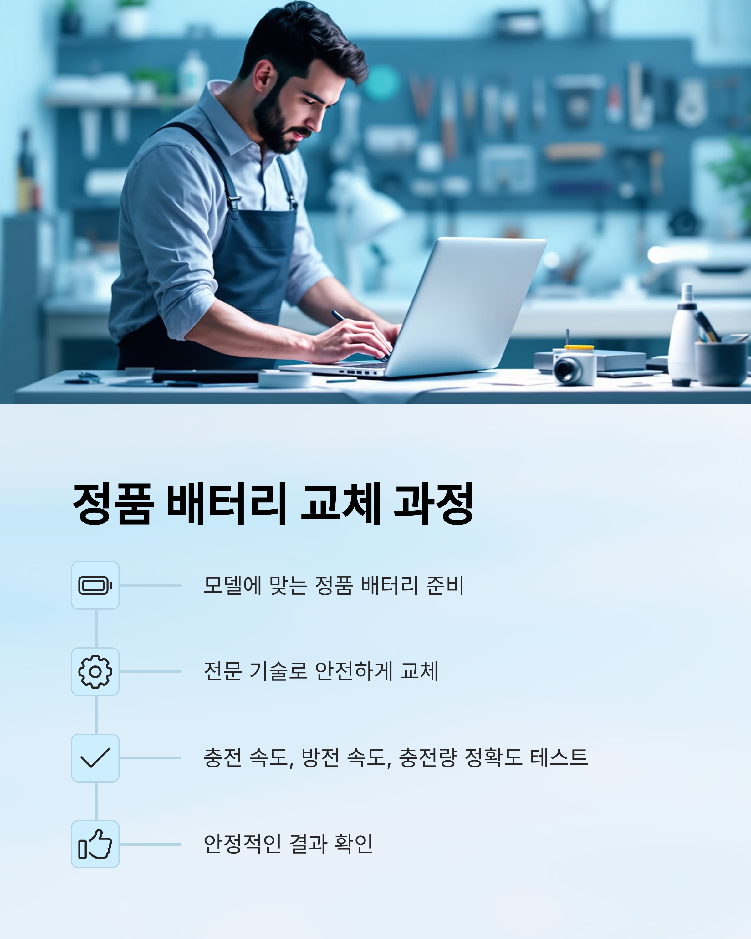 가급적 정품 배터리 위주로 교체를 진행하고 있어요.