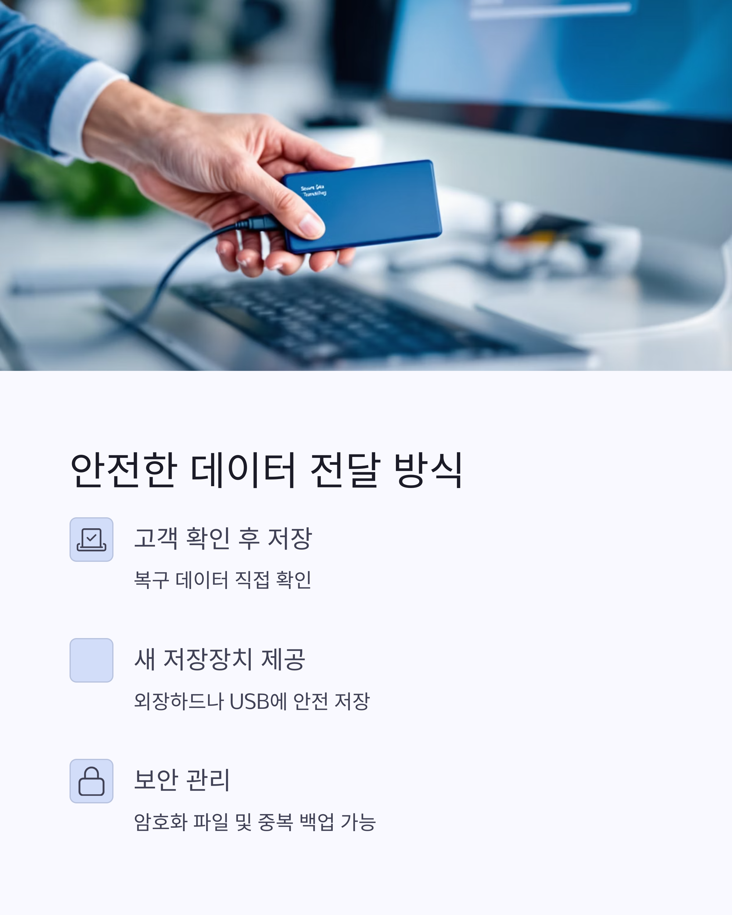 복구한 데이터는 안전하게 저장 후 전달드립니다