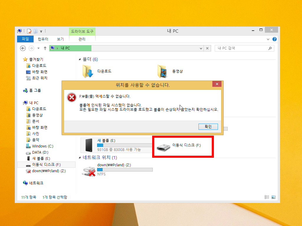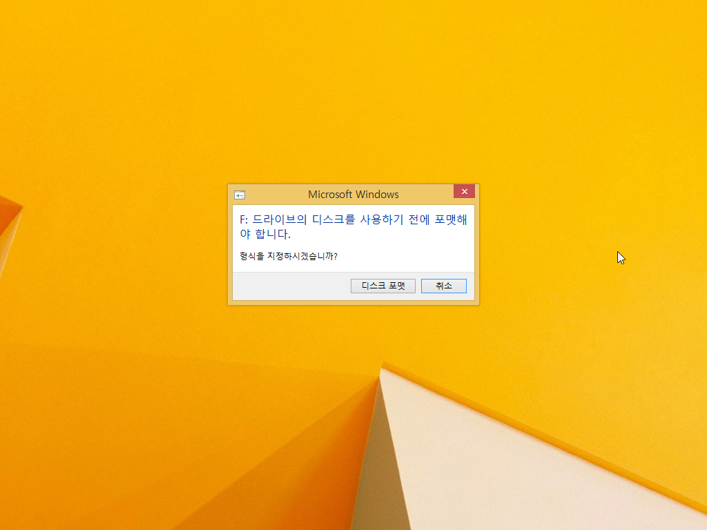 또는 잘 사용 하던 USB가 '갑자기 디스크를 사용하기 전에 포맷해야 합니다'가 뜨고 읽을 수 없는 경우가 있습니다.