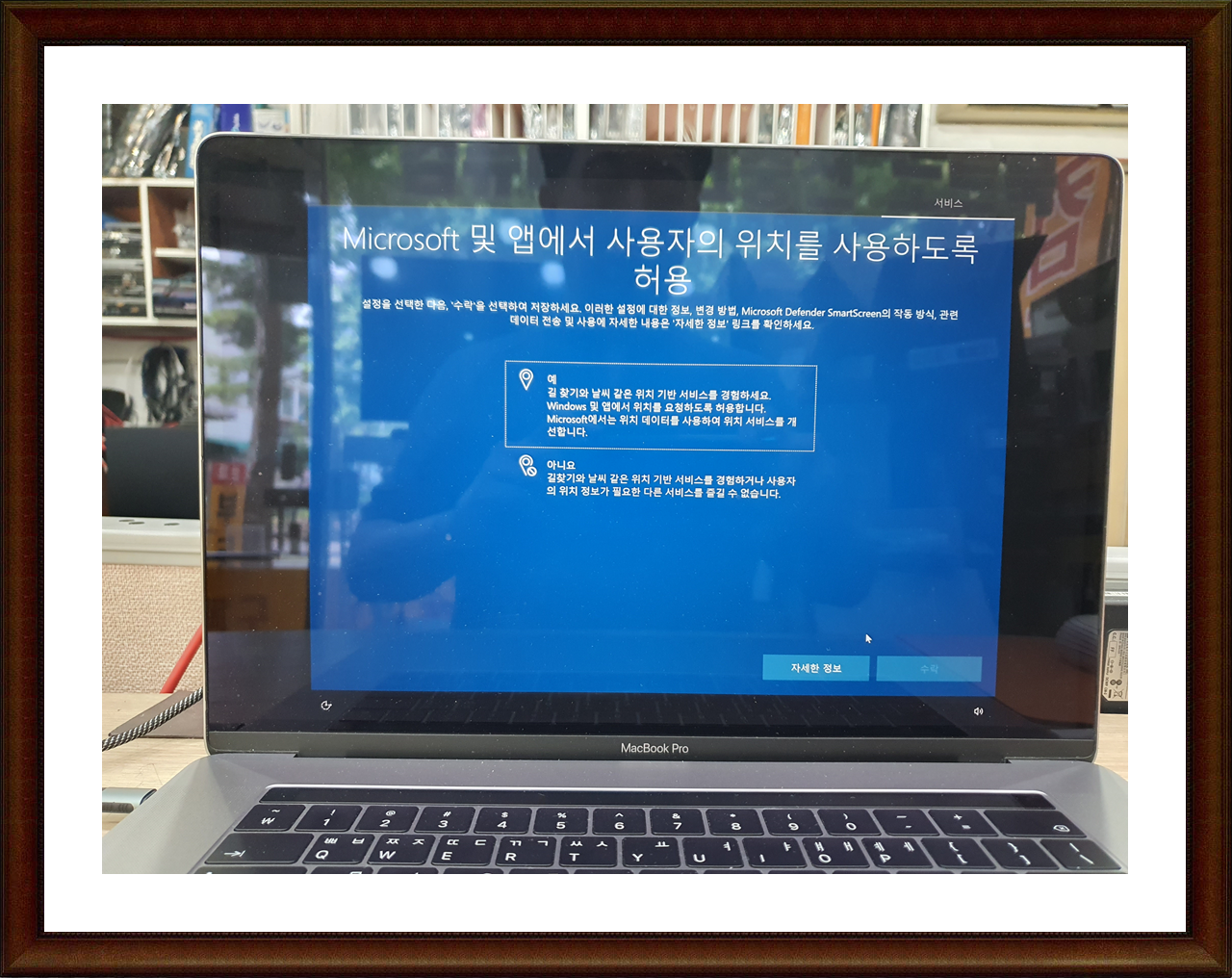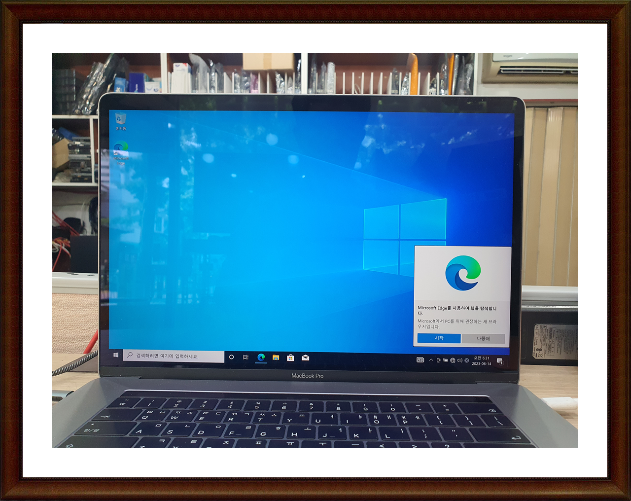 설치가 완료된 뒤에는 부팅 메뉴를 통해 맥OS와 윈도우10을 자유롭게 전환했습니다. 고객님은 USB를 사용하지 않고도 이렇게 깔끔하게 설치가 될 줄 몰랐다며 무척 흥미로워하셨습니다. 사실 저도 몇 년 전만 해도 청주맥북윈도우 환경을 만들 때 늘 USB 메모리를 챙겨 다녔지만, 최근에는 인터넷 환경이 워낙 좋아지다 보니 다른 방식으로도 가능해졌습니다. 물론 고속 연결이 보장되지 않는다면 이 방법을 권장하진 않습니다만, 제대로만 준비하면 시간도 단축되고 깔끔하게 마무리할 수 있지요.