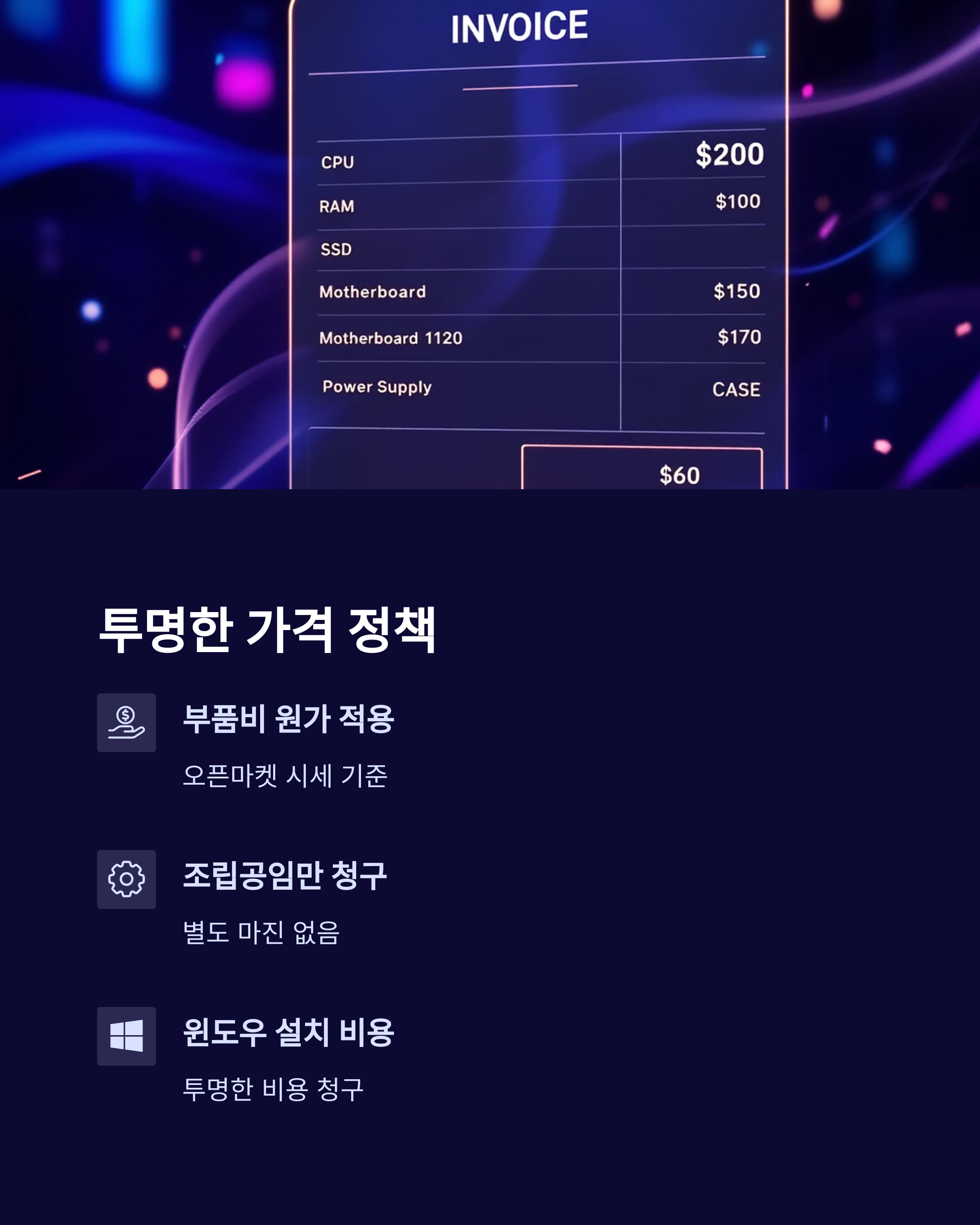 ⚙️ 부품은 원가 그대로, 조립비와 공임만 청구