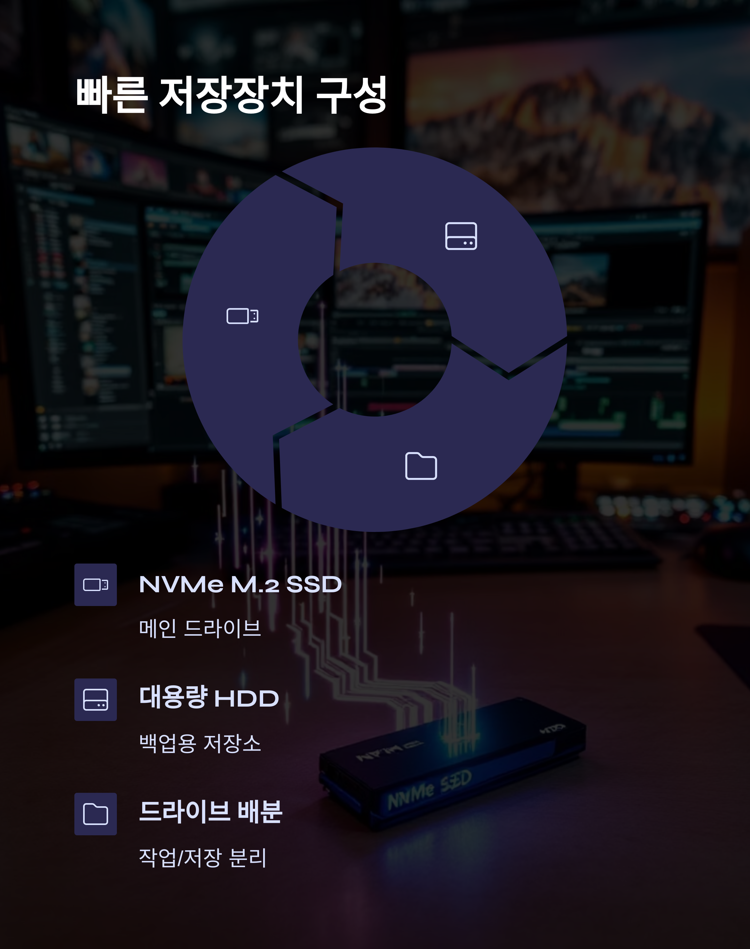 그래서 NVMe M.2 SSD를 메인 드라이브로 사용했고,