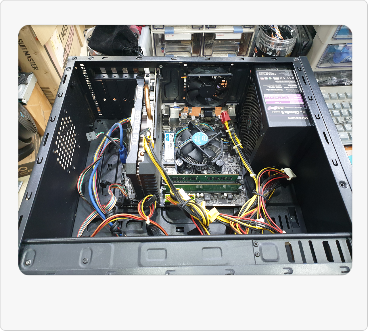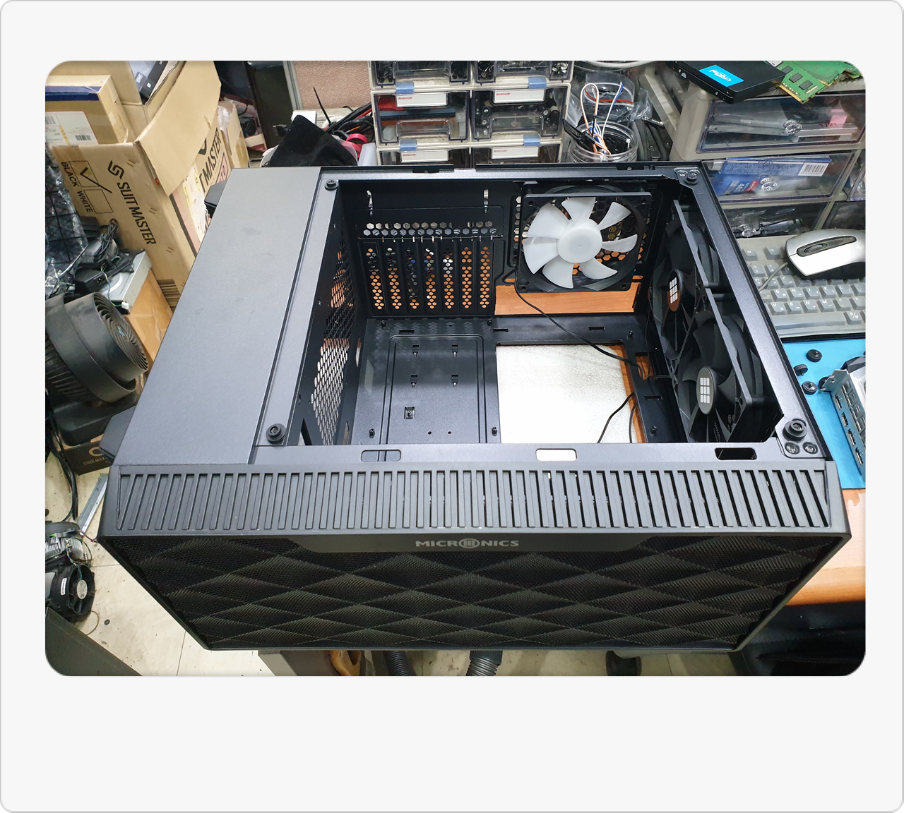 얼마 전에는 낡은 본체를 들고 오신 손님이 계셨어요. 오래 쓰다 보니 케이스에서 시끄러운 소음이 들려, 아예 새 제품으로 교체하고 싶다고 하시더군요. 마침 저희가 보유한 마이크로닉스 케이스가 있어서 추천해드렸고, 청주컴퓨터수리 를 고민하시던 손님도 흔쾌히 “알겠다”라며 맡기셨죠. 낡은 케이스는 그동안 애쓰며 버텼지만, 이제는 새 옷을 입힐 때라는 생각이 들었습니다.