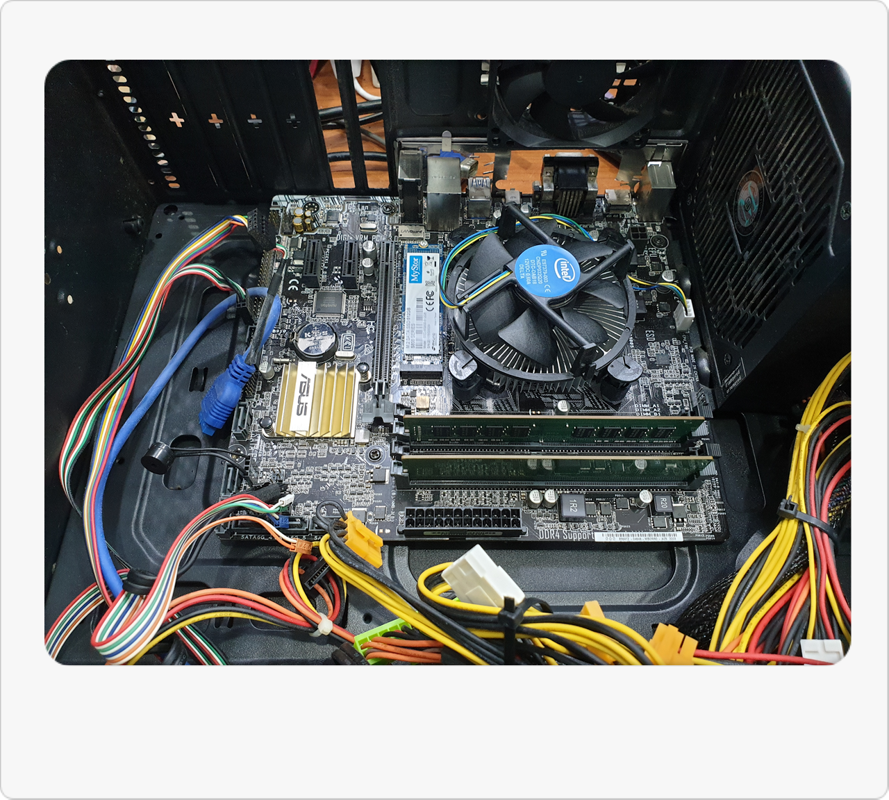 본격적으로 작업하기 전에, 기존 케이스 속 부품들이 어떤 상태인지 꼼꼼히 살펴보았습니다. 때로는 부품 노후화가 심해 교체가 필요할 수도 있지만, 이번 경우에는 메인보드와 하드디스크, 그래픽카드 등이 다행히 크게 손상되지 않았어요. 청주컴퓨터수리 를 진행하면서 가장 신경 쓰는 부분은, 손님이 원치 않는 부품 교체가 이뤄지지 않도록 정확히 진단하는 거예요. 필요 이상으로 비용을 늘리지 않으려는 것이 저희 매장의 원칙이기도 하고요.