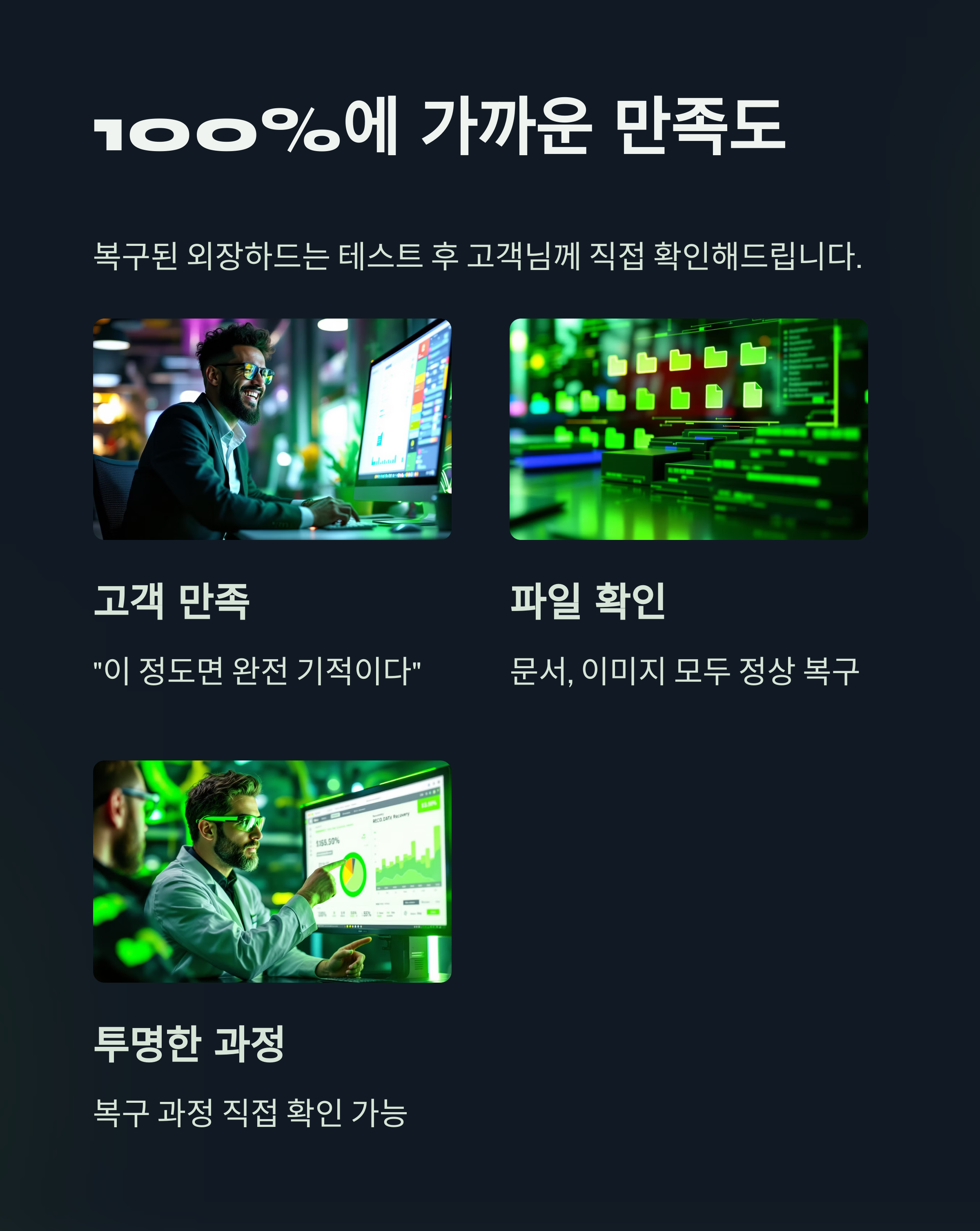 복구 결과 100%에 가까운 만족도