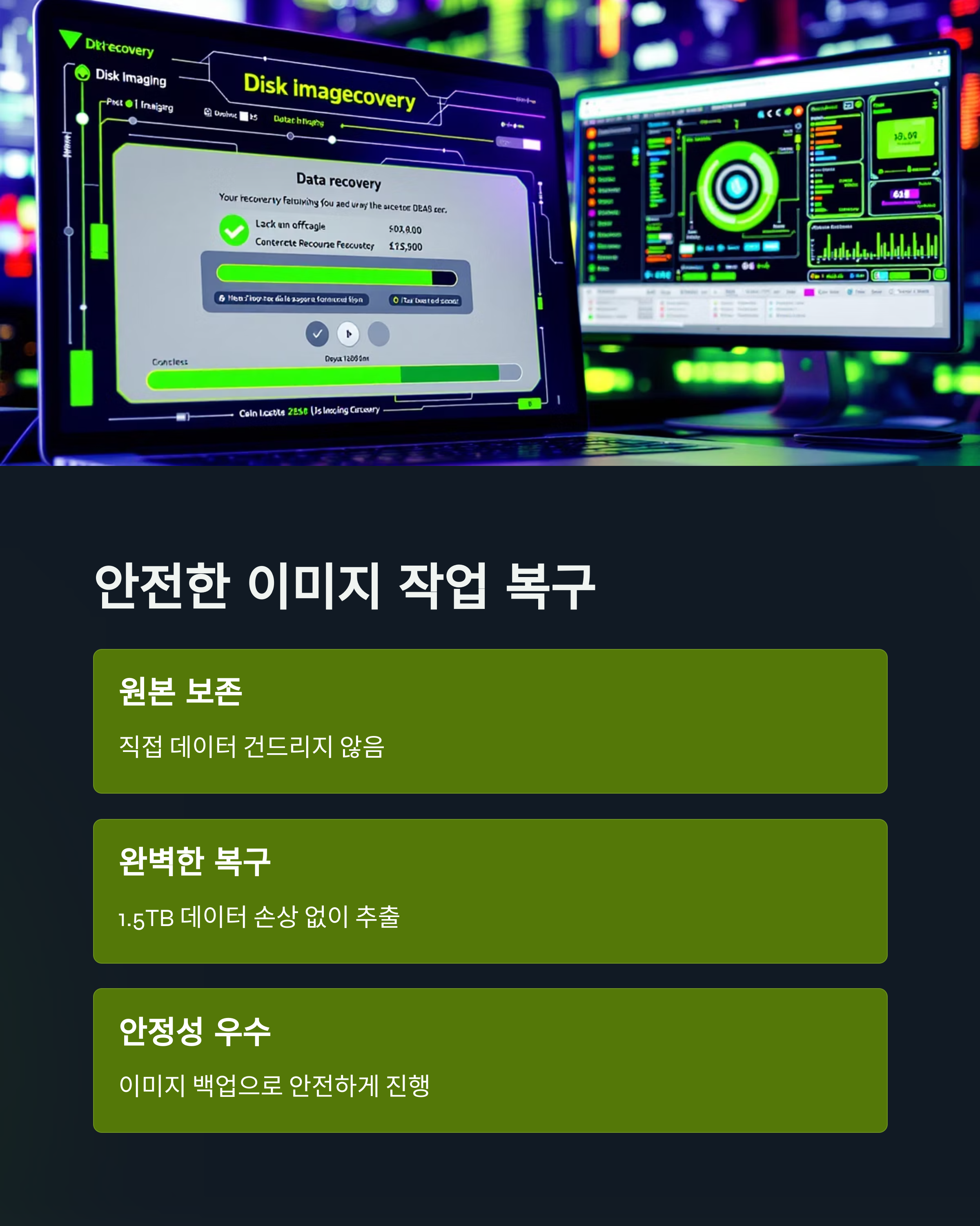 상황에 따라 다르지만, PC3000 장비와 정밀 작업으로 높은 복구율을 보장해드립니다.