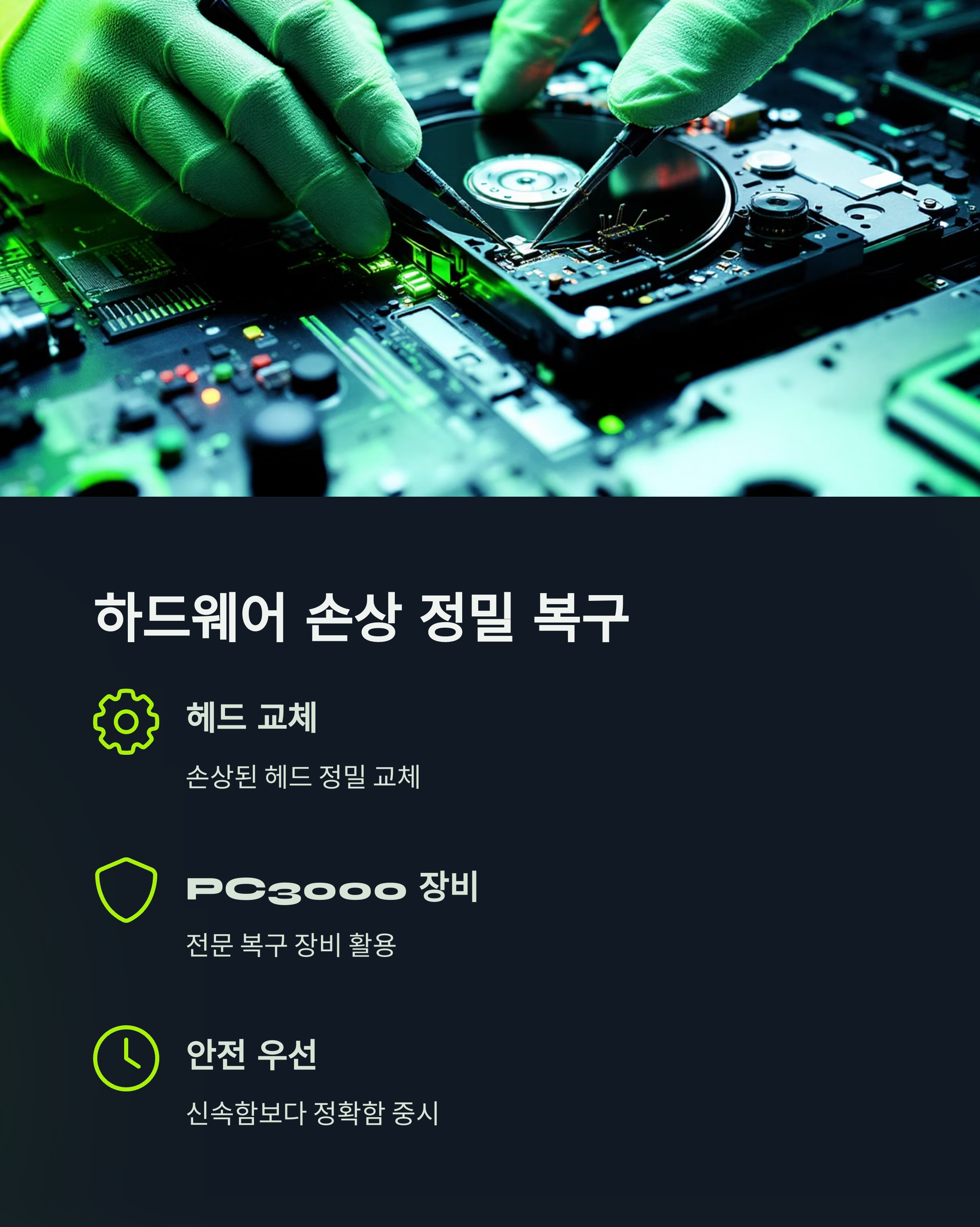 하드웨어 손상, 헤드 교체로 정밀 복구 진행