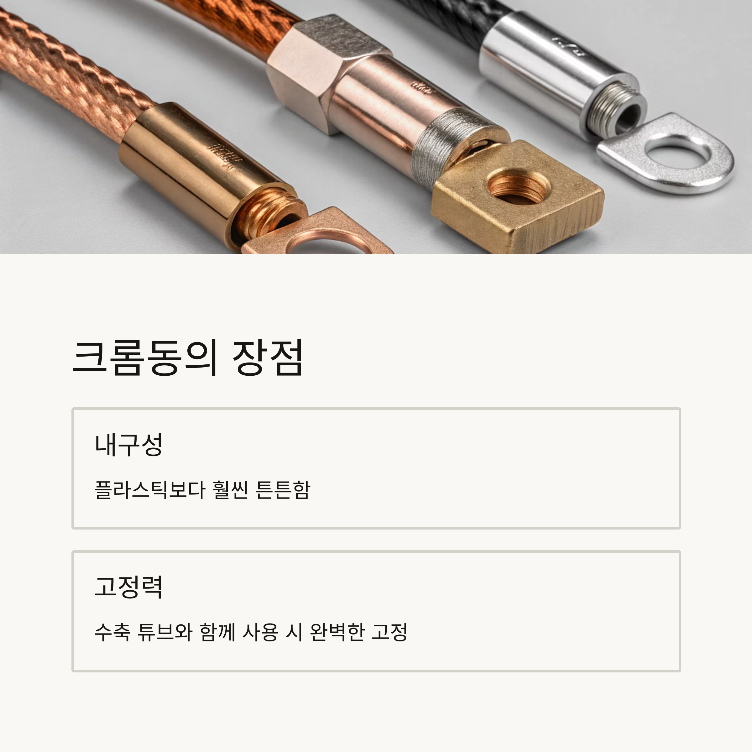 크롬동 제품을 여러 환경에서 써봤는데, 실내 인테리어 전기 시공뿐 아니라, 차량용 배선 작업이나 산업 현장에서도 꽤 안정적으로 사용할 수 있겠다는 확신이 들었어요. 마감 품질에 신경 쓰는 분들이라면 정말 고려해볼 만한 선택이에요.