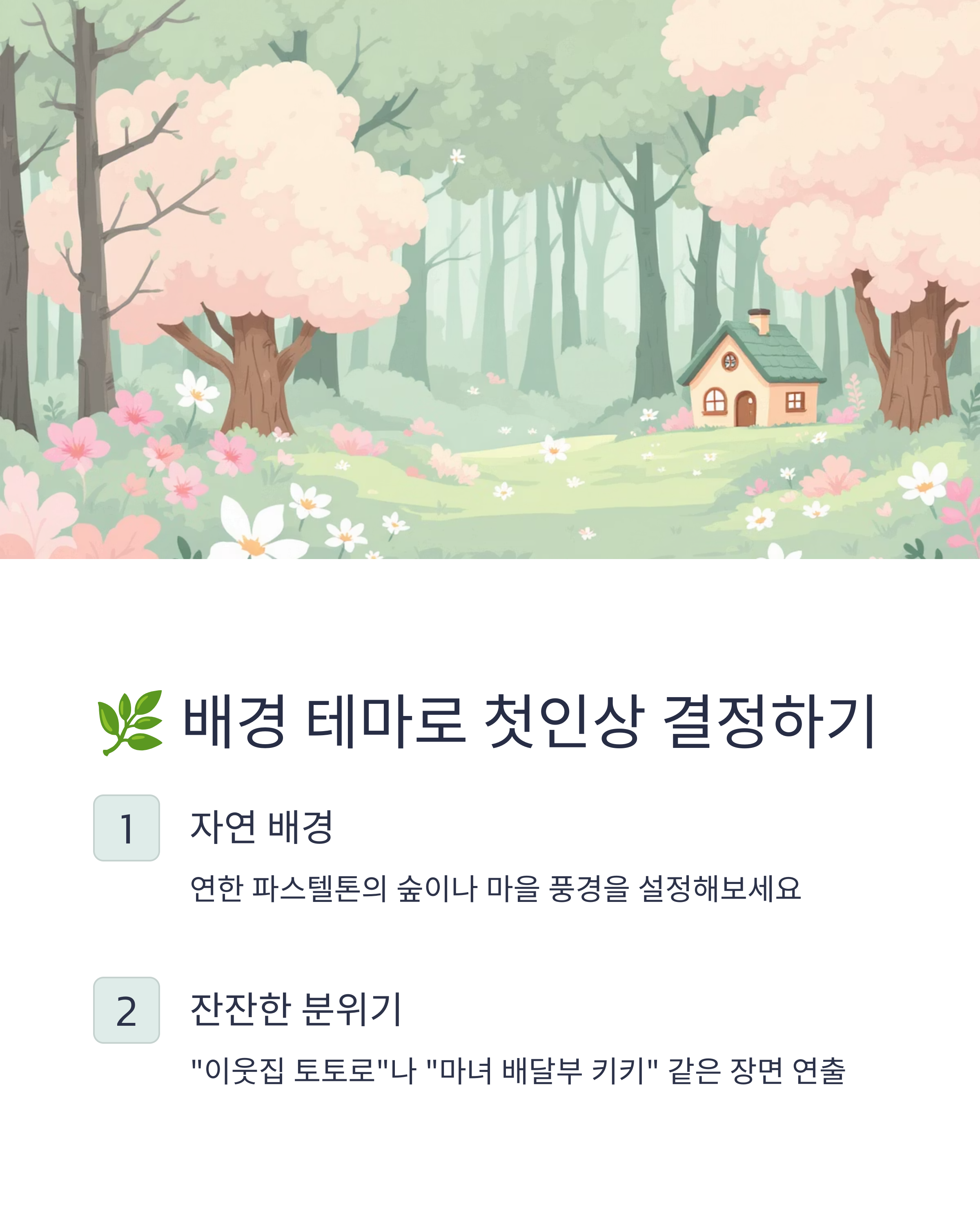 무료 이미지 사이트나 직접 캡처한 지브리 배경을 활용하세요.