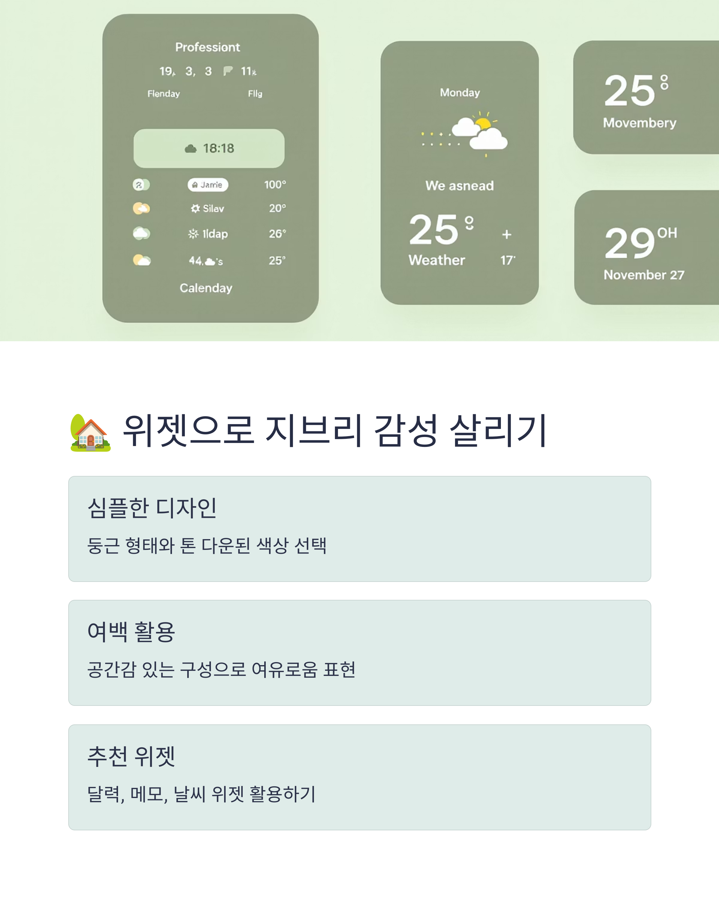 기본 위젯도 감성에 맞게 선택하면 전혀 다른 분위기를 줄 수 있어요.