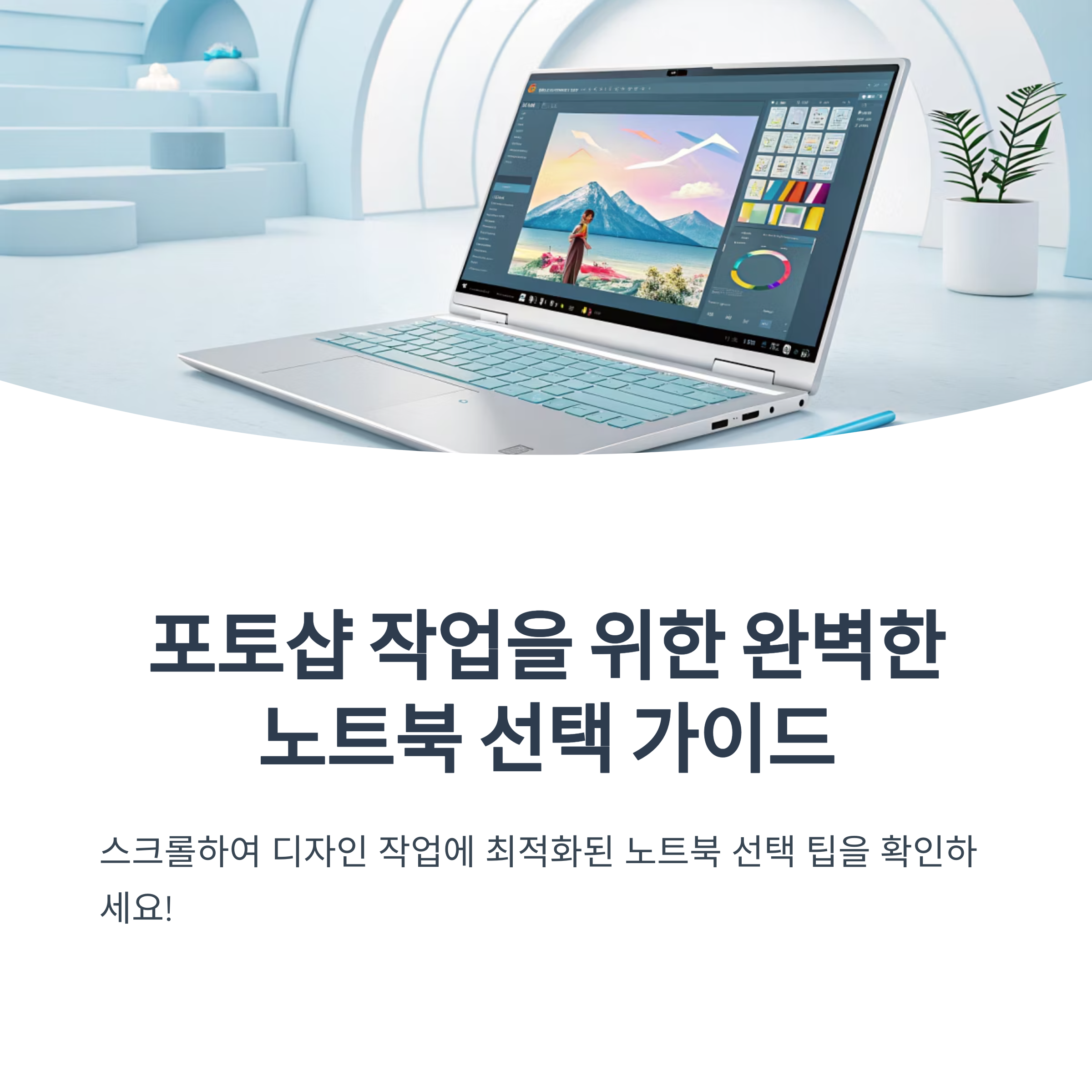 디자인이나 사진 보정 같은 작업을 하다 보면, 결국 컴퓨터 성능이 너무나 중요하다는 걸 실감하게 돼요. 특히 그래픽 리소스를 많이 쓰는 프로그램은 노트북 사양에 따라 작업 속도도, 결과물 퀄리티도 확 달라지더라고요. 그런데 막상 이 작업에 맞는 노트북을 고르려고 보면 스펙이 너무 다양해서 뭘 봐야 할지 더 헷갈려요. CPU? 램? 그래픽카드? 디스플레이 패널? 하나하나 다 신경 쓰자니 너무 복잡하고요. 저도 예전엔 단순히 가격만 보고 골랐다가 진짜 고생한 적 있었거든요. 그래서 오늘은 작업에 딱 맞는 노트북을 고를 때 어떤 점을 기준으로 봐야 하는지 정리해볼게요.
