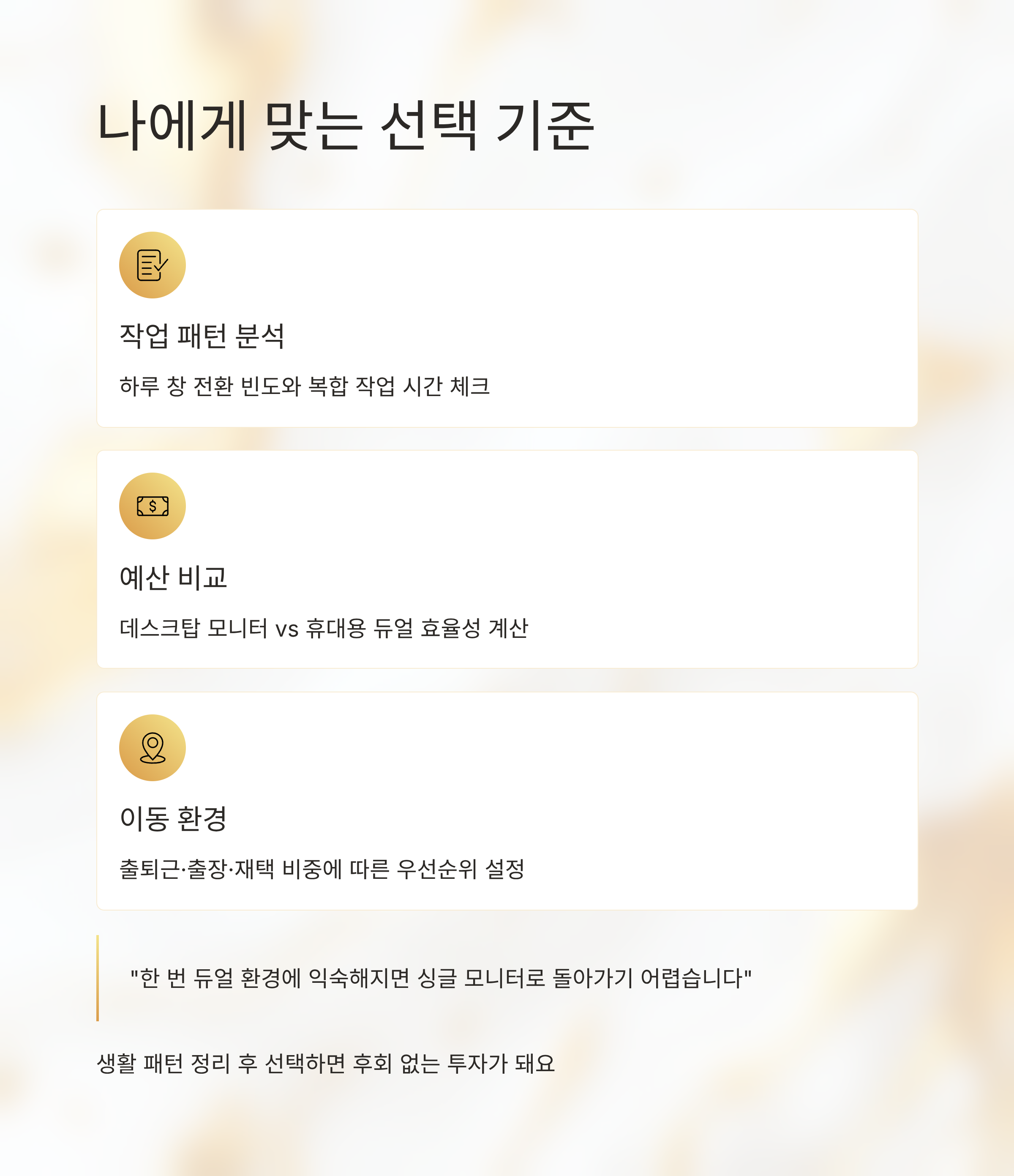 🧩 내 작업 패턴과 예산에 맞는 선택 기준