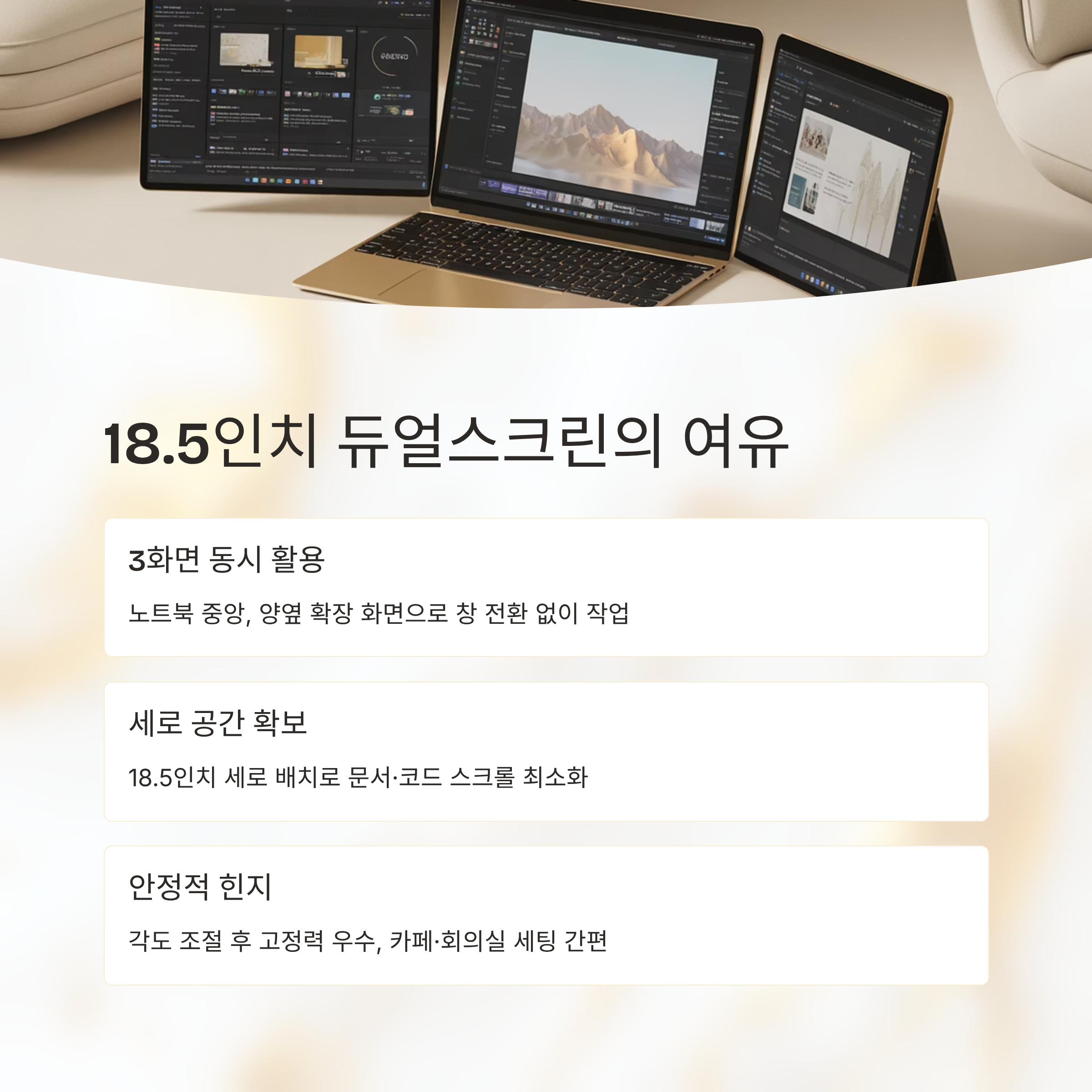 💻 18.5인치 듀얼스크린 구조, 화면 두 개가 주는 여유