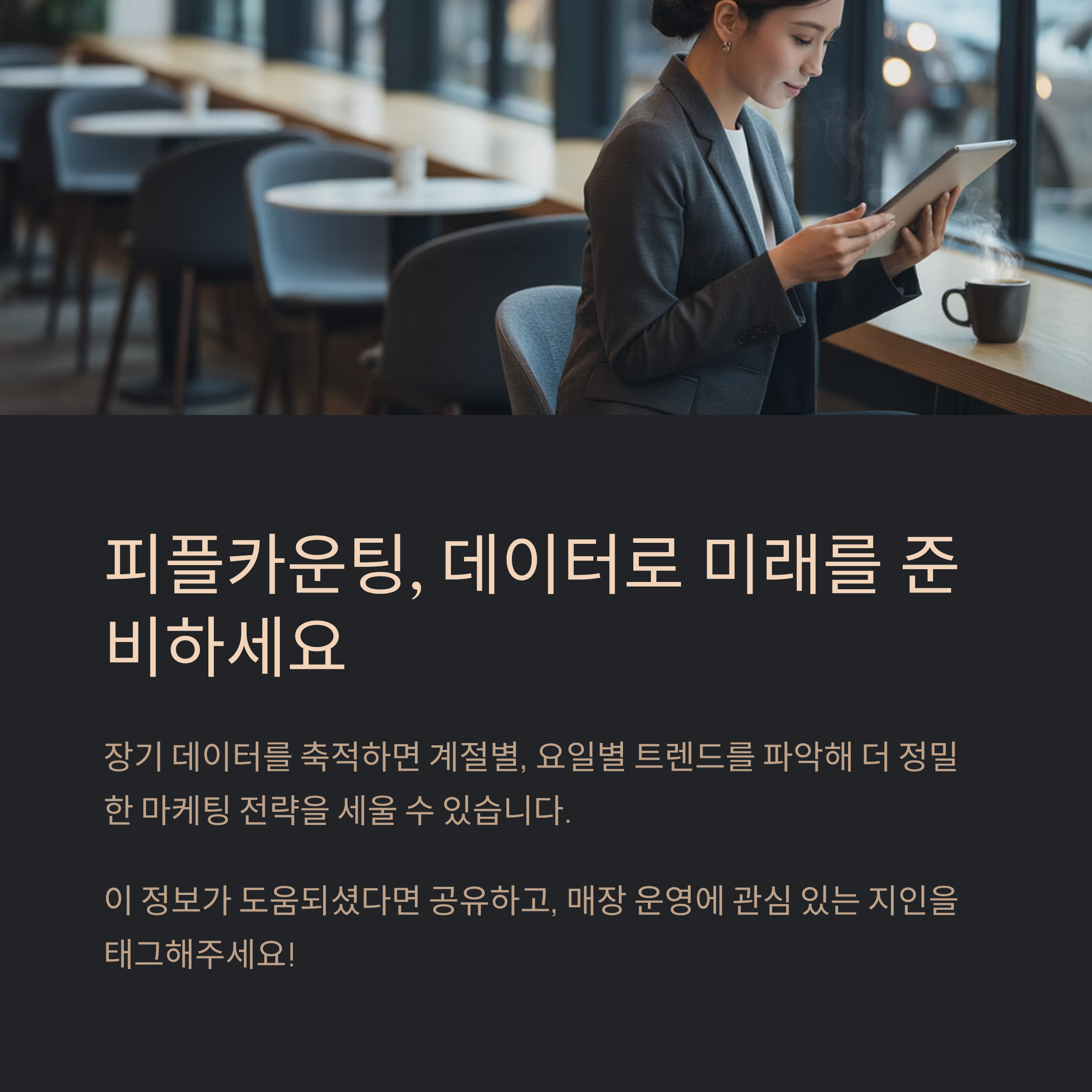 짧은 기간의 데이터만 보면 일시적인 특성만 보입니다. 장기간 데이터를 축적하면 매출 변동과 직접 연결되는 패턴을 찾을 수 있습니다. 예를 들어, 특정 계절이나 휴일 전후에 방문자가 어떻게 변화하는지 파악하면, 해당 시기를 겨냥한 마케팅 전략을 훨씬 정밀하게 세울 수 있어요. 단기적인 판단으로는 절대 알 수 없는 흐름을 파악하는 데 아주 큰 도움이 됩니다.