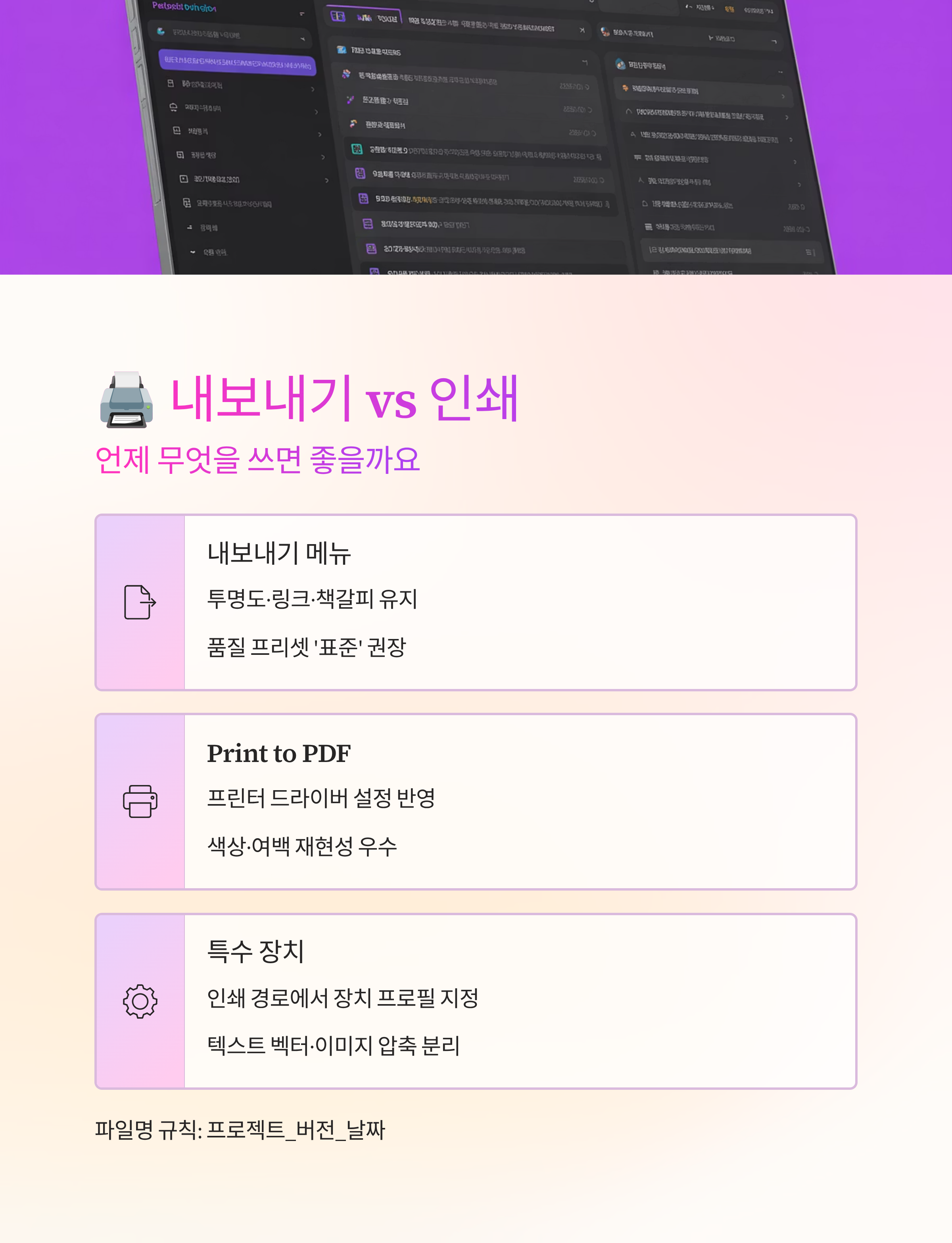 🖨 내보내기 vs 인쇄, 언제 무엇을 쓰면 좋을까요