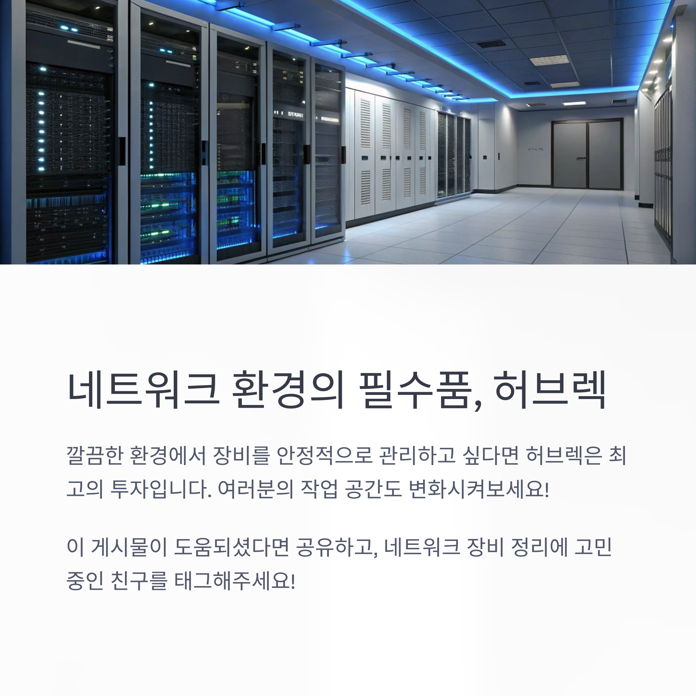 이처럼 허브렉은 네트워크 장비가 여러 개 존재하는 환경에서는 한 번쯤 꼭 검토해볼만한 아이템이었어요. 장비를 올려두기만 하는 방식보다 훨씬 체계적이고 안전한 구성이 가능했어요.