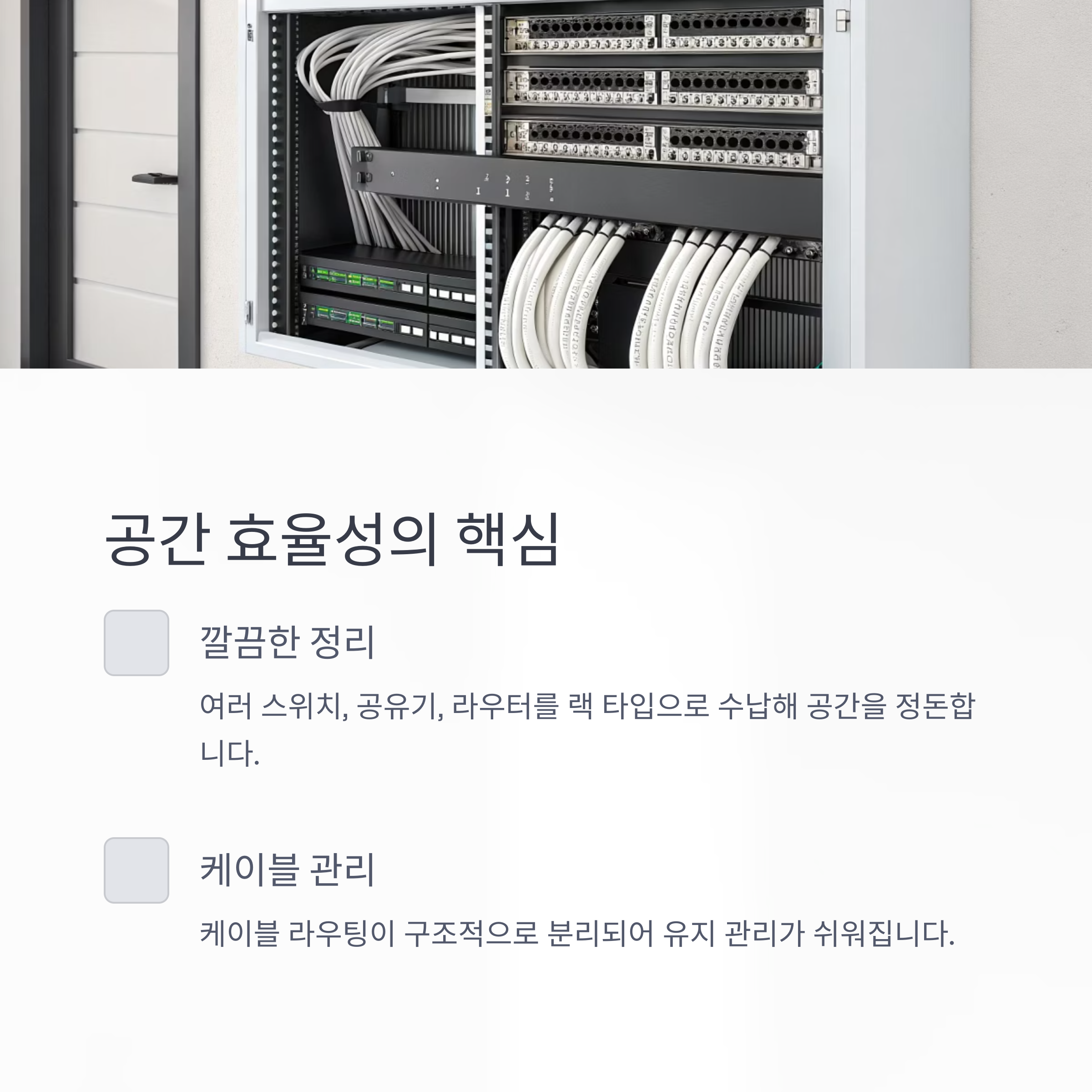 실제로 사용해보면 장비가 서로 간섭 없이 고정되고, 케이블 라우팅이 구조적으로 분리되기 때문에 유지 관리도 쉬워졌답니다. 특히 벽걸이형 모델이나 슬림 타입을 활용하면 작은 사무실이나 작업실에서도 충분히 공간 효율을 확보할 수 있었어요.