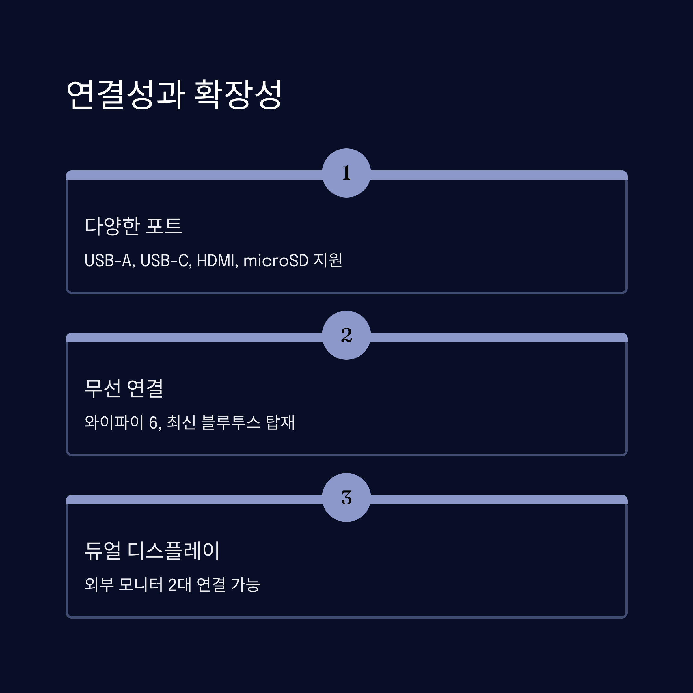 USB-C와 HDMI 포트를 동시에 활용하면 듀얼 디스플레이 구성도 가능합니다.
