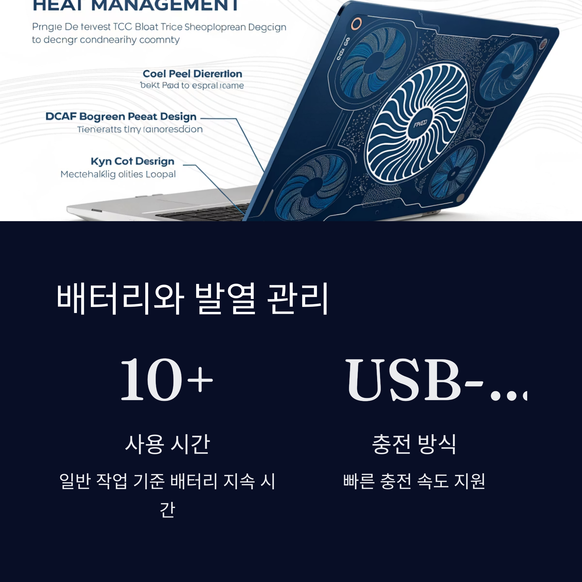 무엇보다 중요한 건 발열 관리인데요, 슬림한 디자인임에도 열 방출이 잘 되도록 내부 구조가 정교하게 설계되어 있어요. 팬 소음도 정숙한 편이라 조용한 공간에서 사용해도 불편함이 거의 없어요.