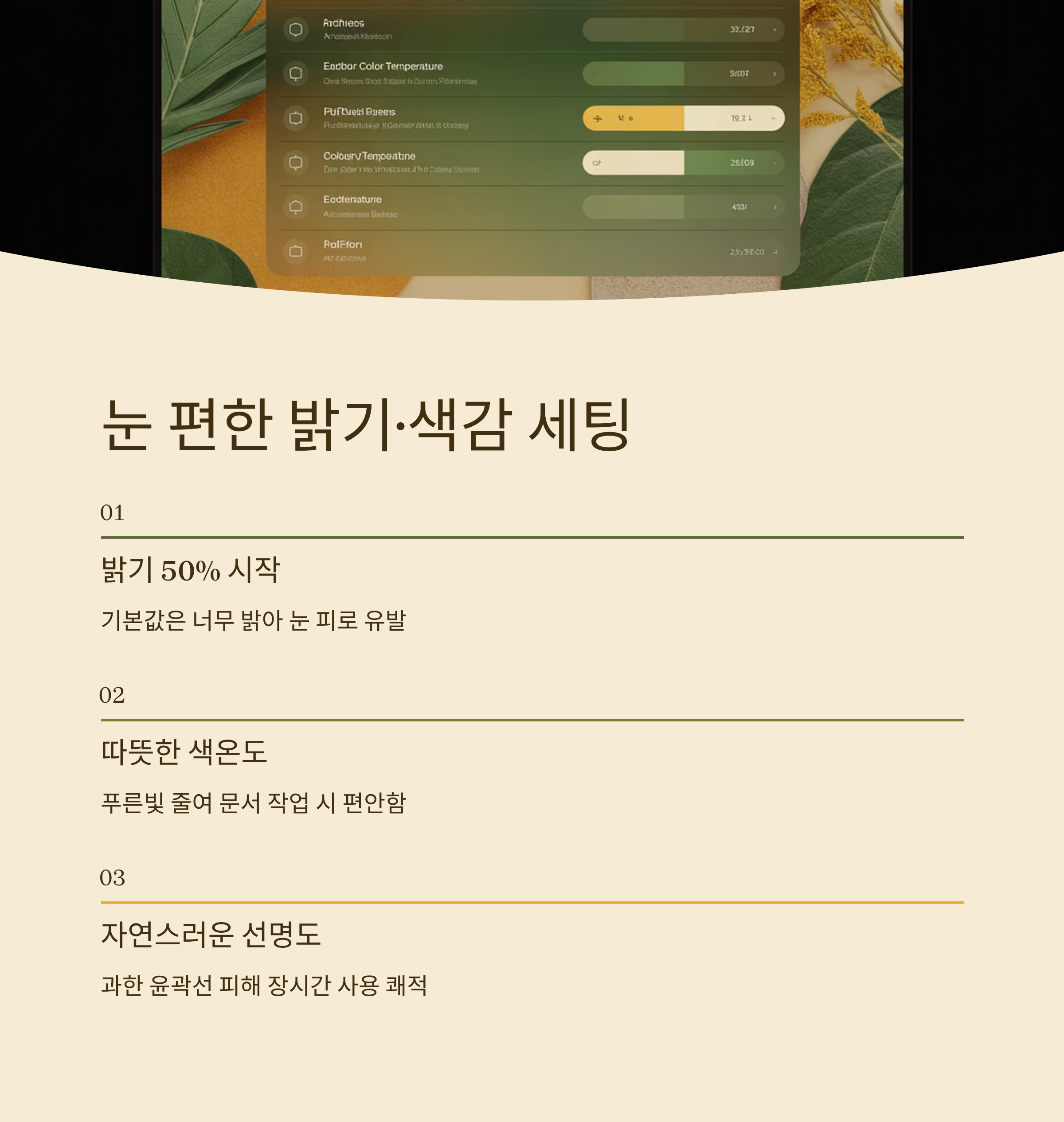 ⚙️ 밝기·색감 세팅, 눈 편한 값부터 찾아보기